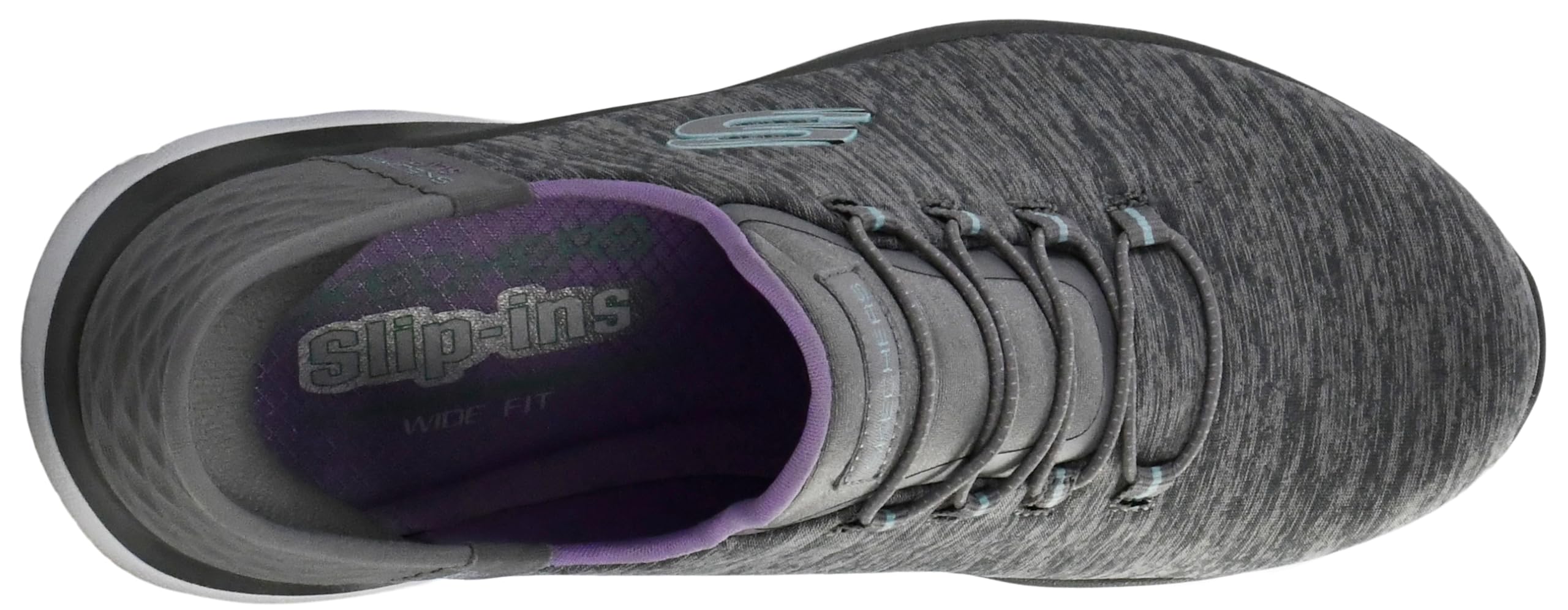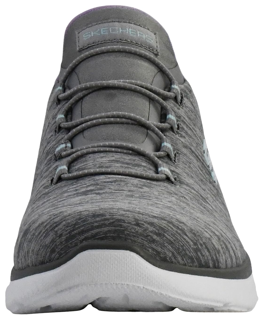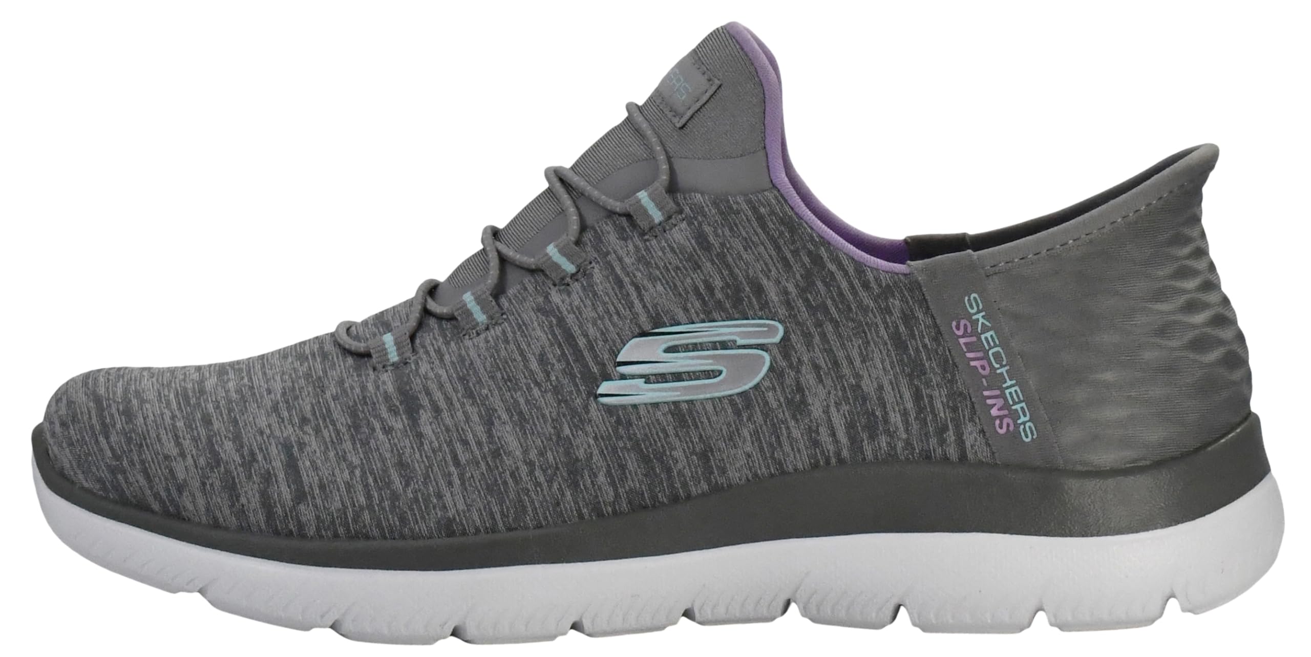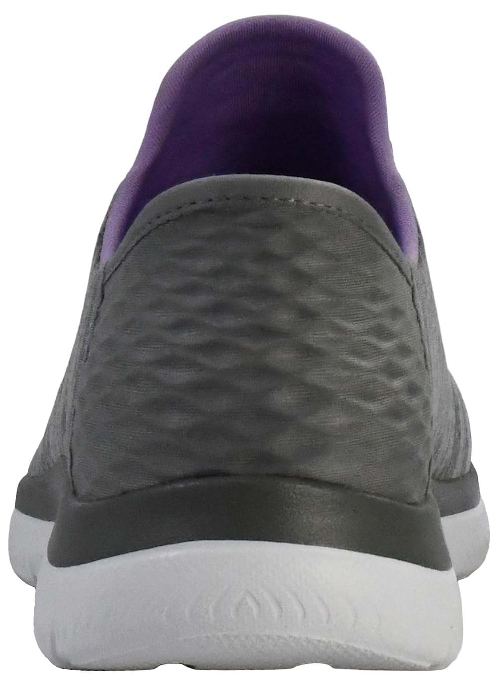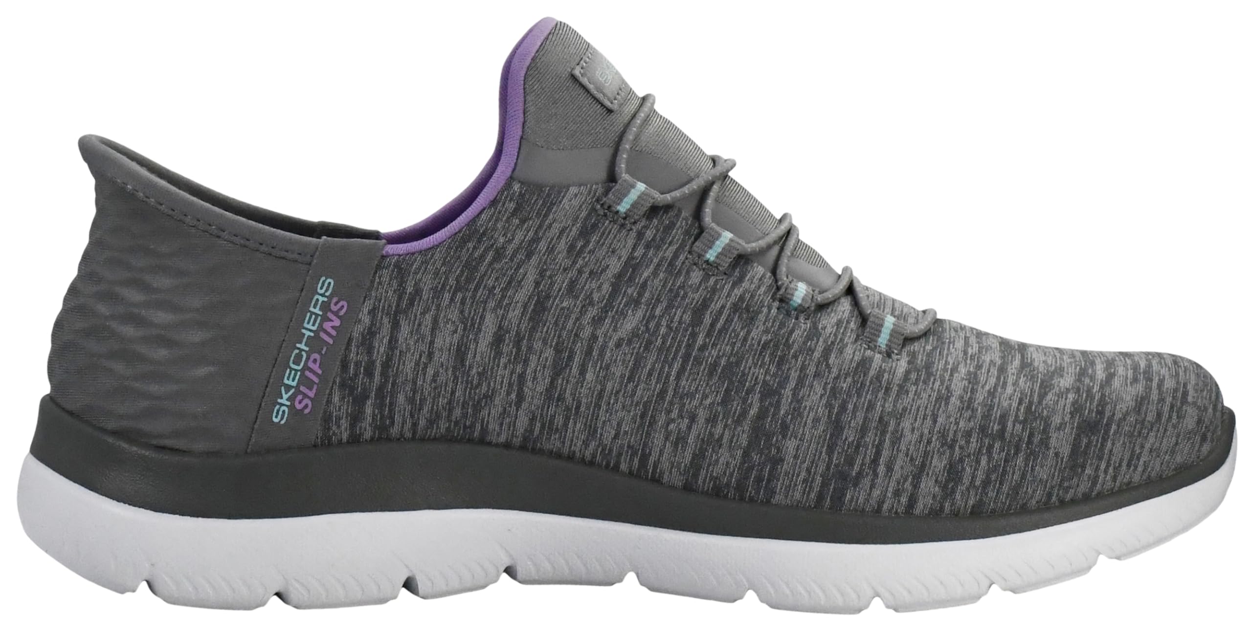 Description Experience ultimate comfort and convenience with these slip on shoes for women from Skechers. The Summits Dazzling Haze features a soft heathered jersey knit upper with fixed stretch laces and hands-free entry. These womens slip on shoes combine athletic performance with casual style, featuring Air-Cooled Memory Foam insole and a Heel Pillow design that keeps your foot secure. Perfect for active lifestyles, these vegan slip on sneakers for women offer lightweight comfort with a flexible traction outsole.