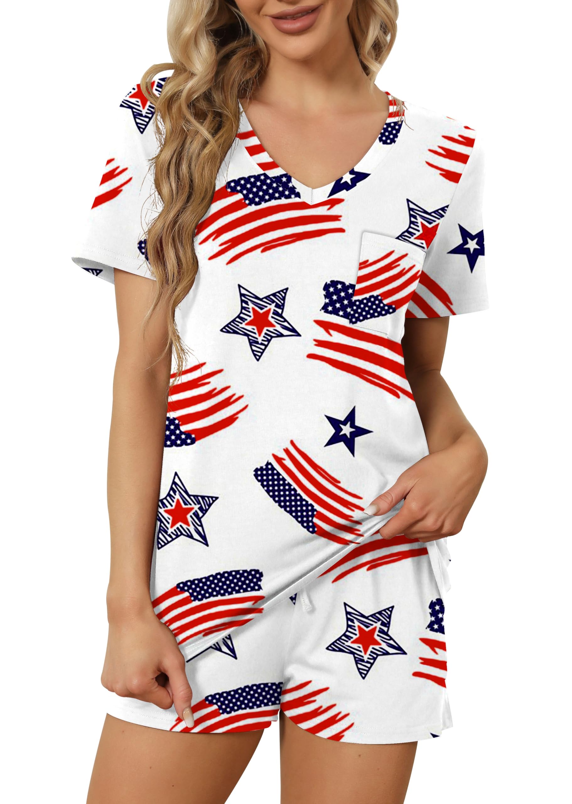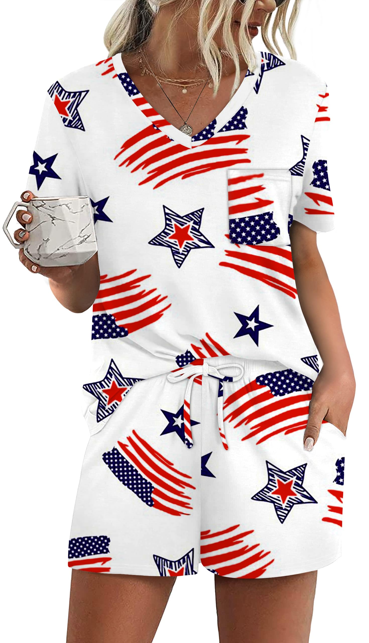 FEATURE --- The package including 1 x short sleeve t-shirt and 1 x short. The top has classic v neckline and a pocket. The short has elastic drawstring and side pockets. The cute top is perfectly complemented by shorts. Casual and sexy in daily life.