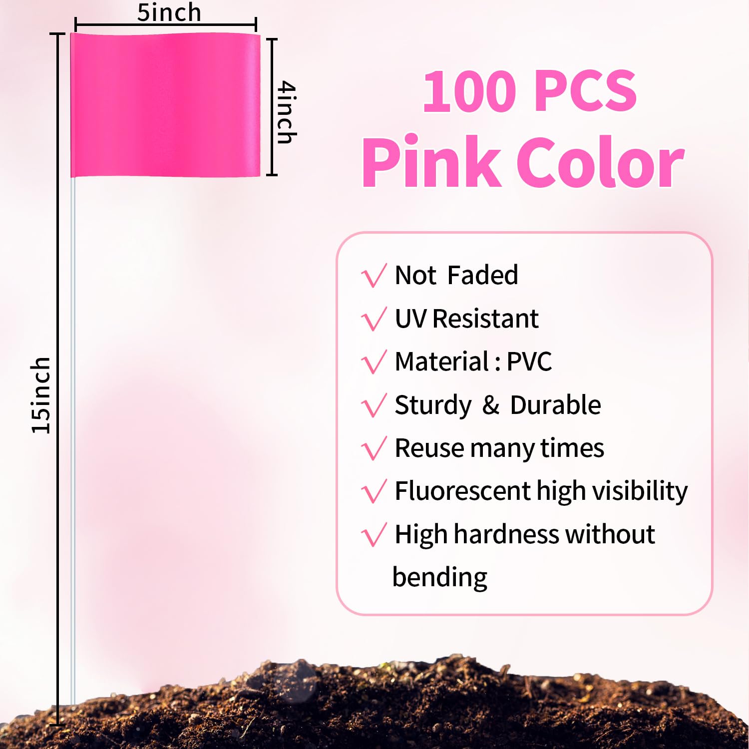 ⛳【INDUSTRY WIDE APPLICATIONS】Ideal for construction field layouts, line location, landscaping, pet training, utility construction, line locating, hardware to forestry, and pet containment, These PVC marker flags are very visible from a distance. Marking Flags are ideal for above ground marking in a variety of industries.