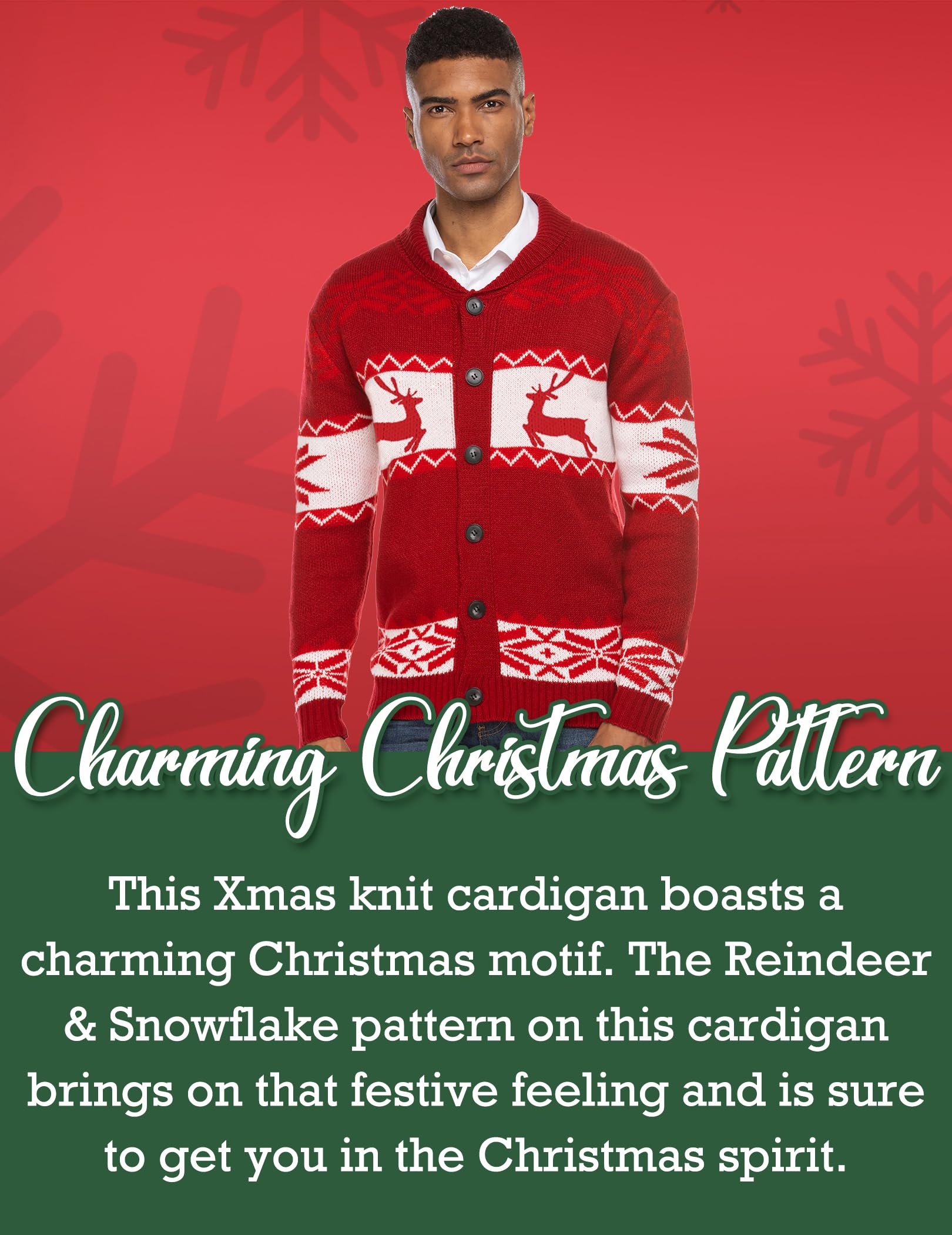 CHARMING CHRISTMAS PATTERN - This Xmas knit cardigan boasts a charming Christmas motif. The Reindeer & Snowflake pattern on this cardigan brings on that festive feeling and is sure to get you in the Christmas spirit.