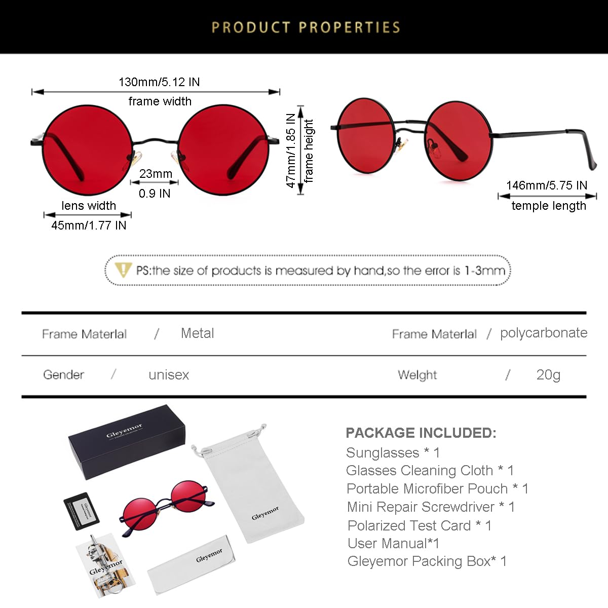 ★ VINTAGE DESIGN – Get a classic look with the gold/black metal frame sunglasses that feature small round lens shape for any face. Tiny circle sunglasses is a timeless model that combines 80s 90s hippie style with exceptional quality, performance and comfort, great for daily use, or used as party, cosplay costume accessories.