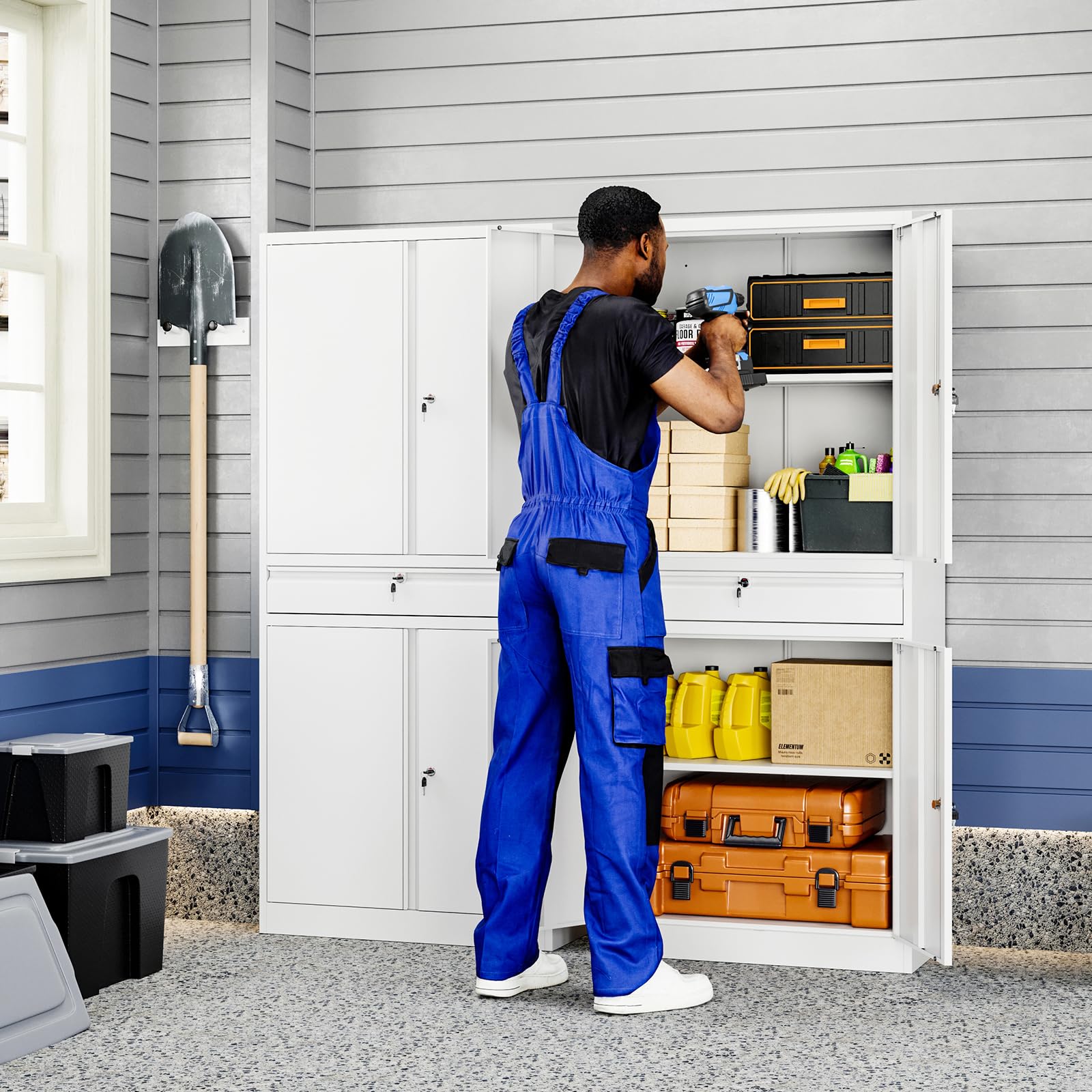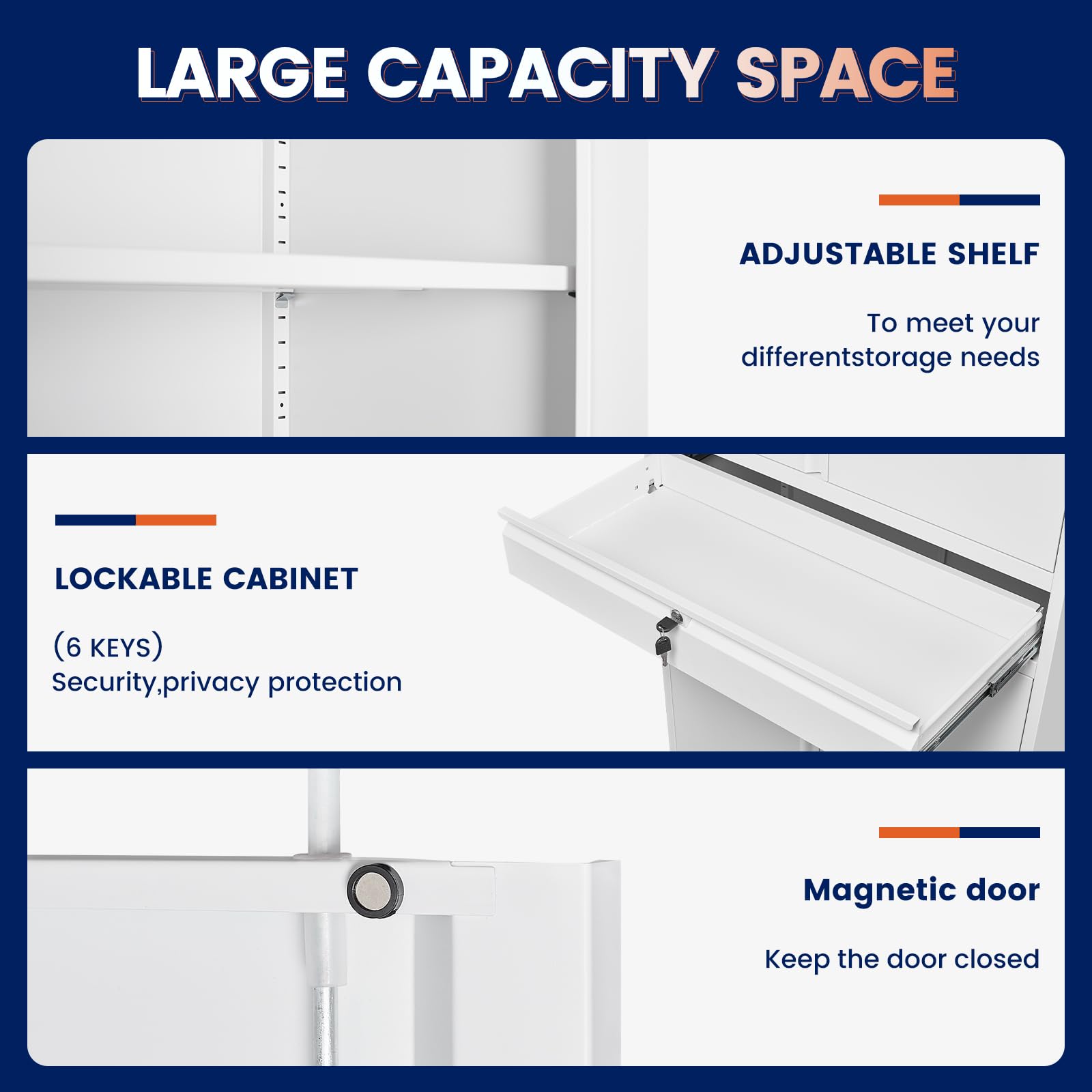 『WEIGHT CAPACITY』: Sturdy and reliable - each of the shelves in this tall cabinet can hold up to 180lbs, With a heavy duty metal frame, these shelves will stabilize their contents and protect them.Whether you want to store office files, garage tools, or other large and heavy items, it's no problem.