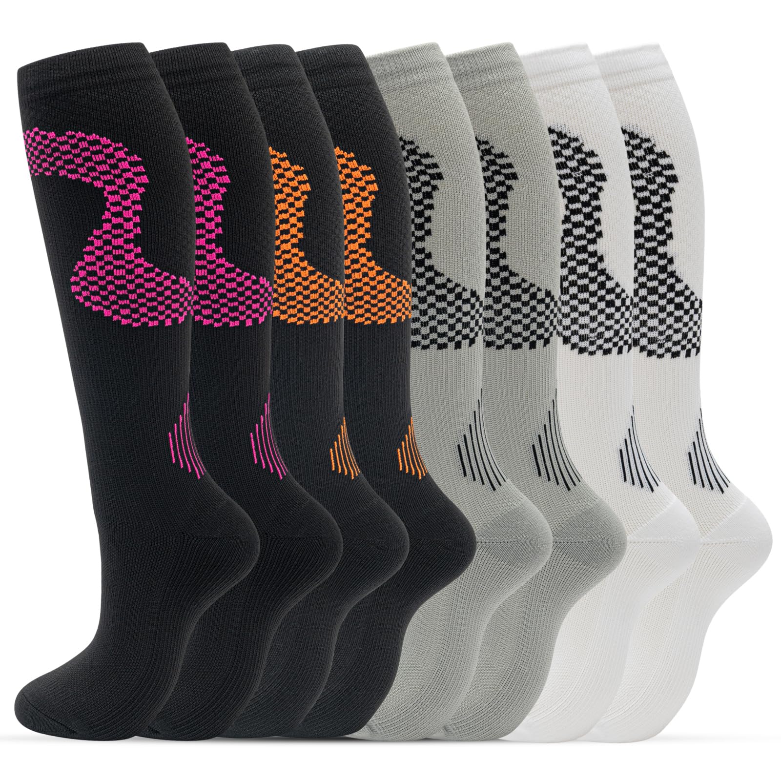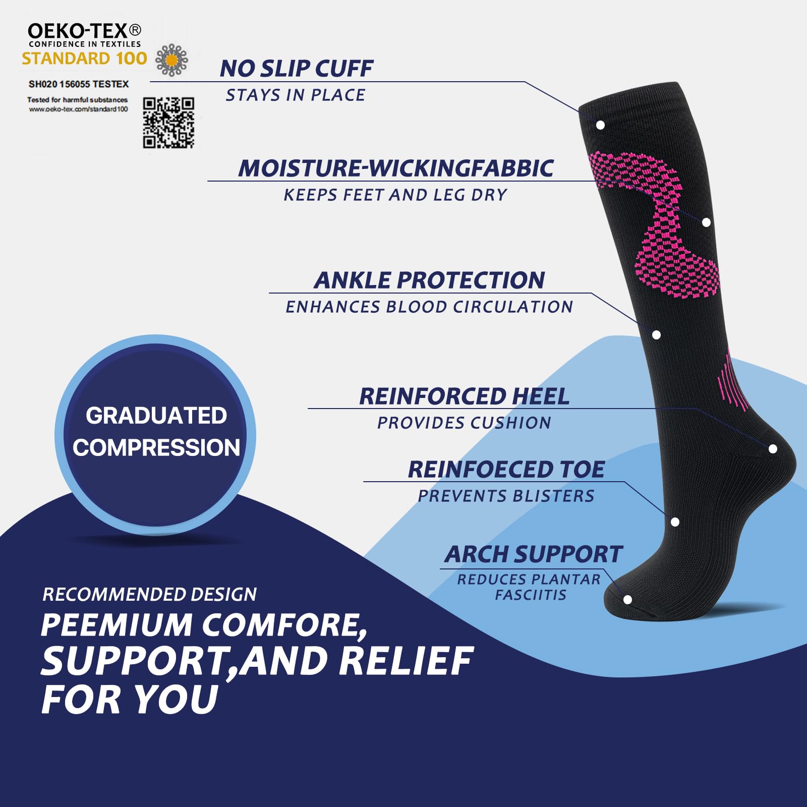 fenglaoda compression socks come in many unique designs, non-slip ribbing, progressive compression, thickened heel and toe, and arched support;compression socks knee high also protect calves and ankles.