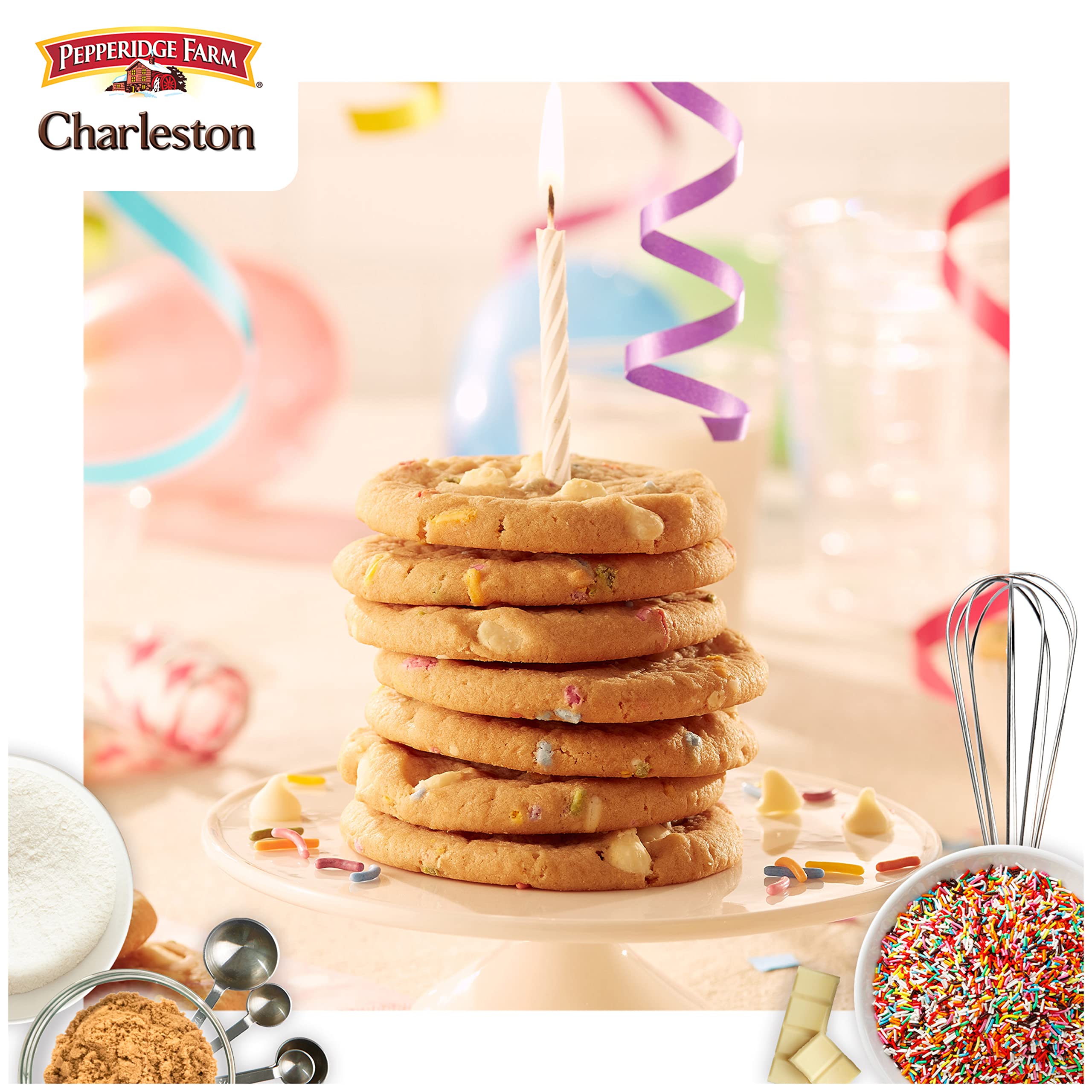 Baked with rich white chocolate chips and colorful sprinkled, these delicious Pepperidge Farm Charleston cookies satisfy your most decadent cookie cravings. Soft and sweet, they're the perfect treat for a mid-day break or to serve at celebrations. With 8 cookies per bag of Pepperidge Farm Charleston Soft-Baked Cookies, there are enough to share. What better way to celebrate than with a cookie! For Pepperidge Farm, baking is more than a job. It's a real passion. Each day, our bakers take the time to make every cookie, pastry, cracker, and loaf of bread the best way they know how - by using carefully selected, quality ingredients.
