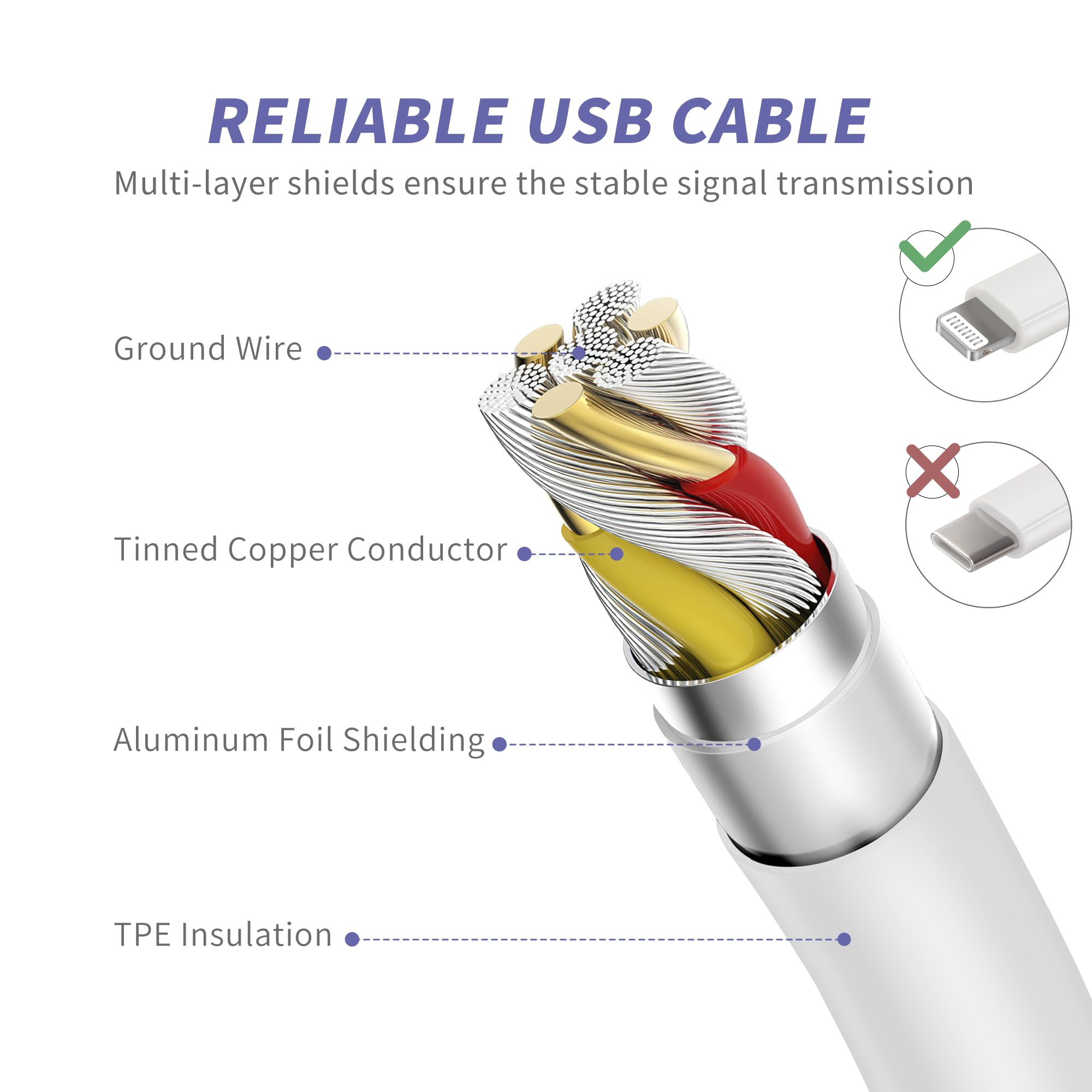 Superior Safety Fast Charging: MAILESI 20W lightning charger has multipotent safety system ensures complete protection for your lightning devices; iPhone fast charge built-in over-voltage protection, features a stable voltage. the lightning cable built-in smart chip to match the current required by devices automatically.