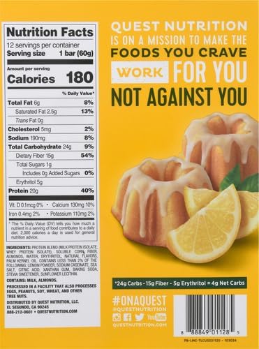 FIBER IS YOUR FRIEND: The Quest Lemon Cake Protein Bars have 13g of fiber to provide your body with a more complete macro profile.