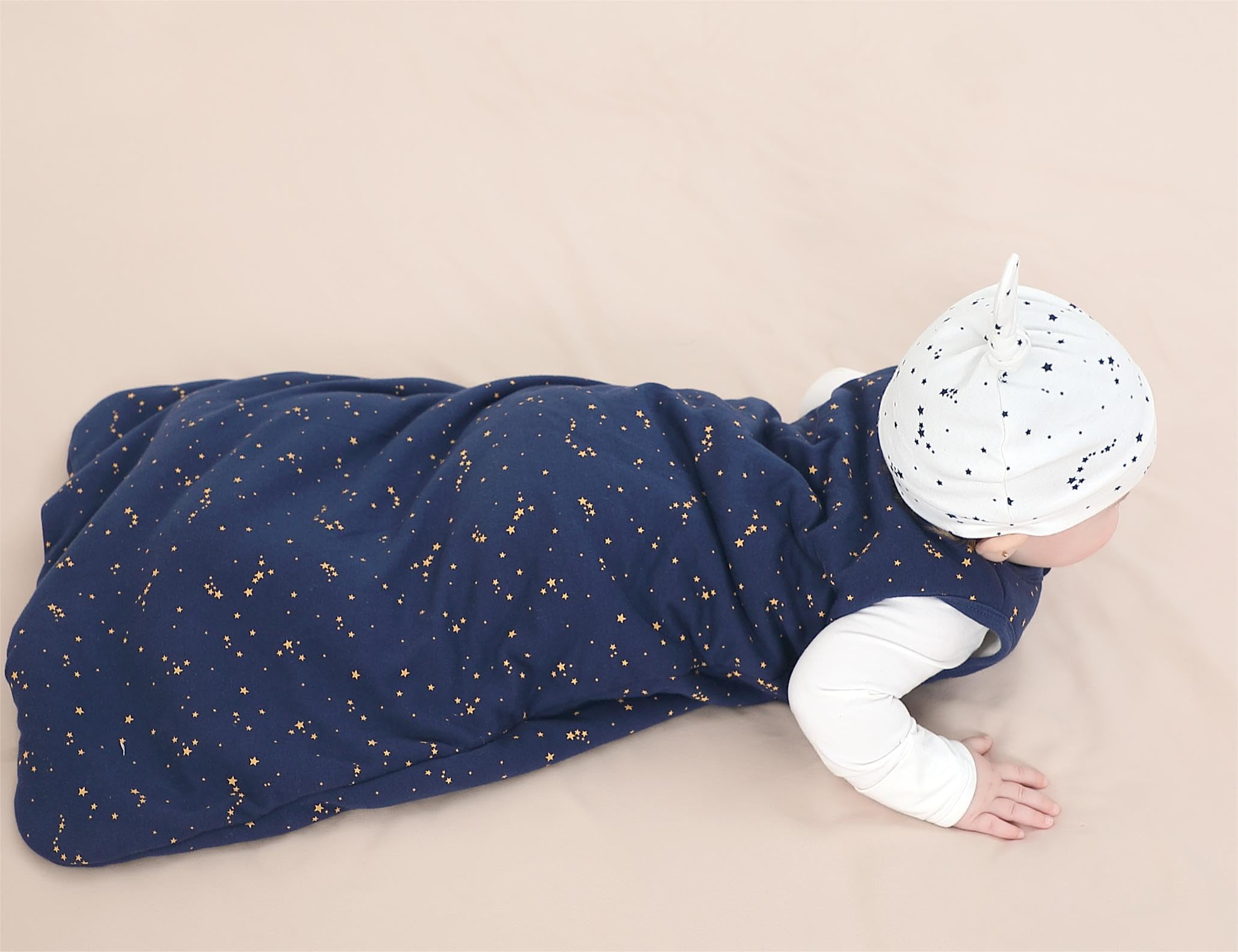 【Light and Comfortable】: With a 0.5 TOG rating, this sleeping bag is ideal for warm weather and suitable for room temperatures exceeding 74 °F. The sleeveless design reduces the risk of overheating, ensuring your baby stays comfortable all night long.
