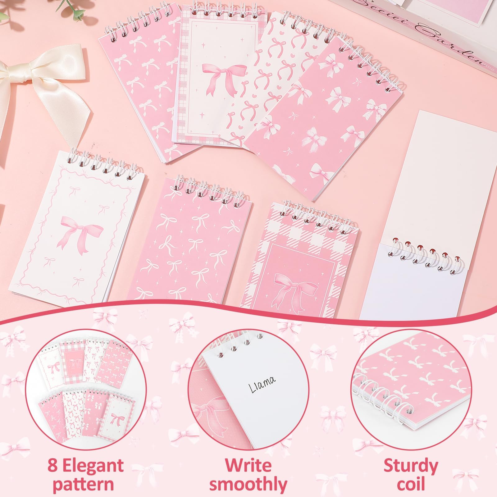 Multipurpose use: Ideal for students, teachers, and professionals, these pink bow mini notebooks are great for note-taking, planning, or creative expression. Mini pink bow spiral notebooks also make thoughtful gifts for women and girls, ideal for birthdays, holidays, or special occasions. With their practical use and cute design, these notebooks are sure to delight anyone who receives them.