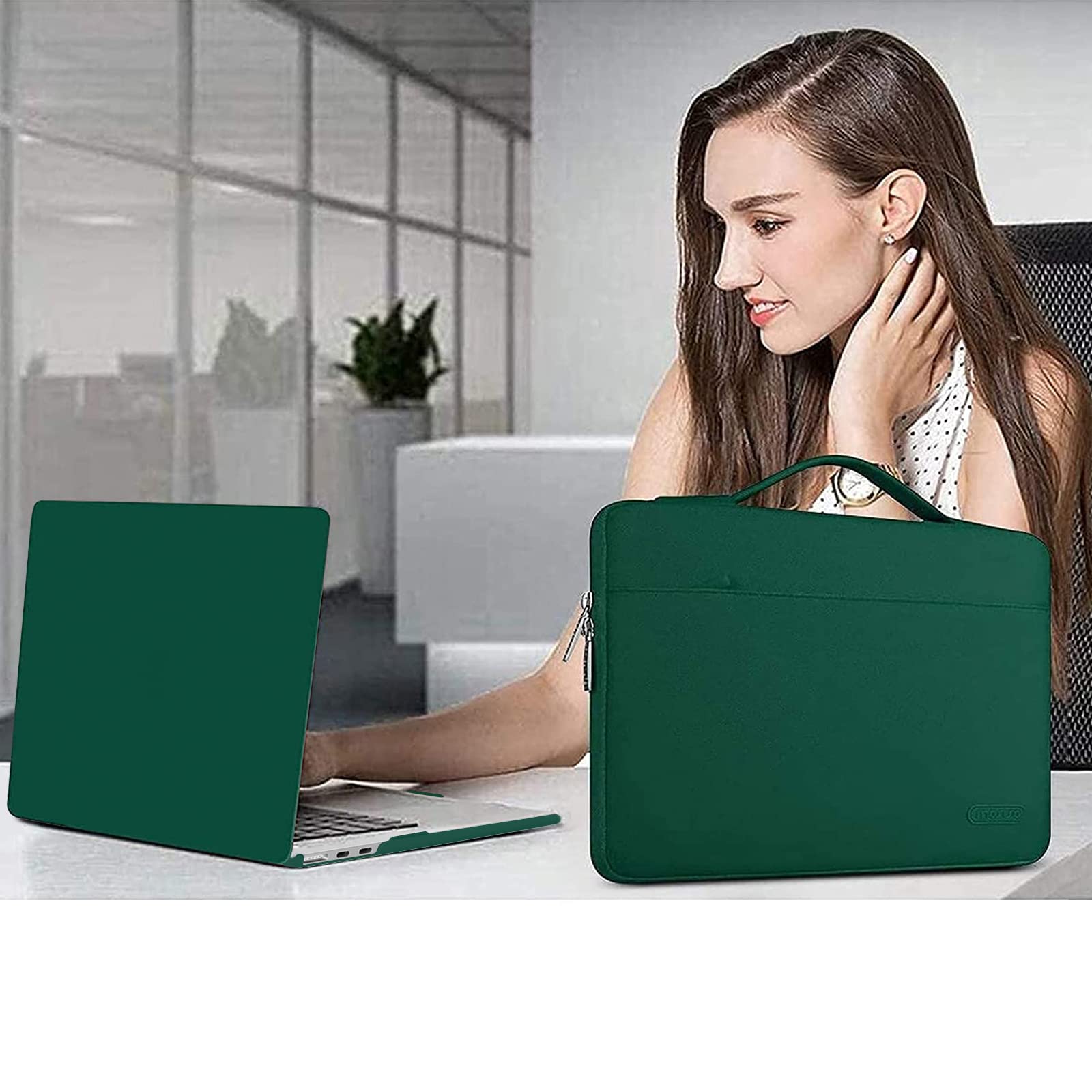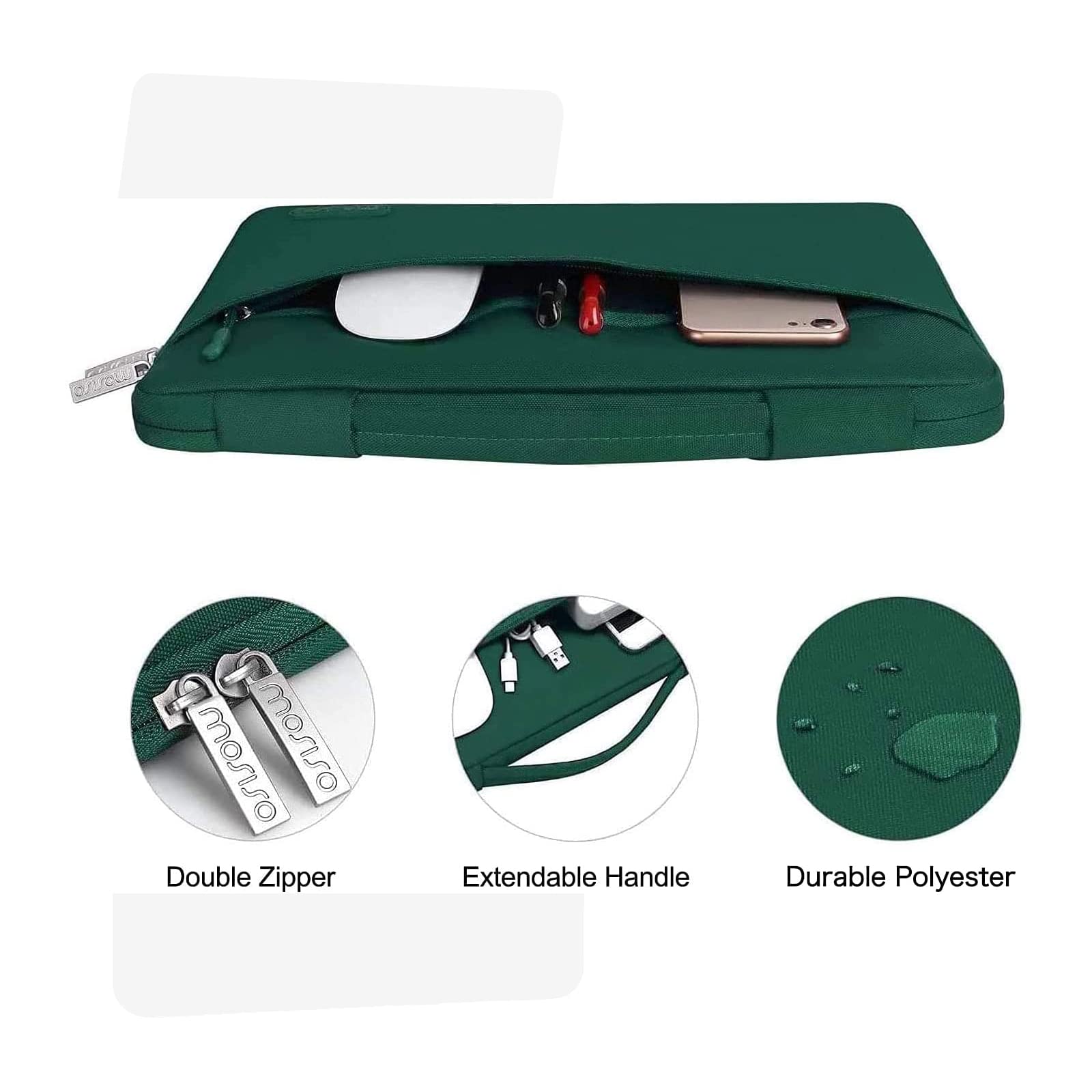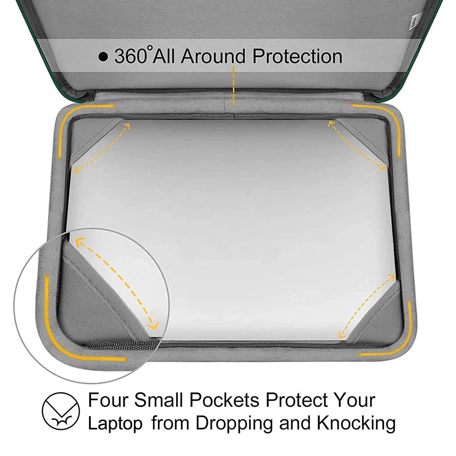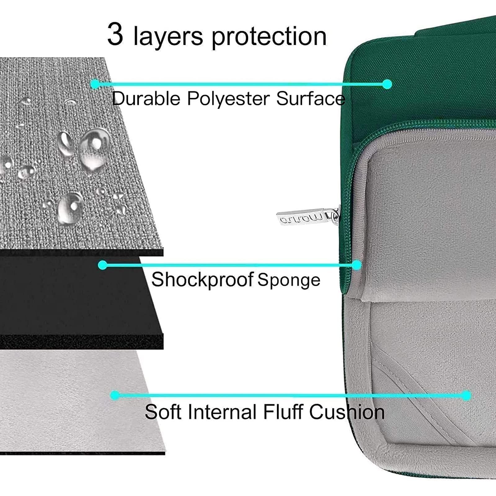 The 360 degree protective shockproof laptop sleeve with handle carrying bag internal dimension: 13.39 x 9.25 x 0.79 inches (L x W x H); external dimension: 13.98 x 9.84 x 0.79 inches (L x W x H). The front side pocket dimension: 11.61 x 9.25 inches (L x W). Made of polyester material, protect your laptop against accidental spills. Slim and lightweight, does not bulk your device up and can easily slide into your briefcase, backpack or other bag. Ideal for business, daily and travel.