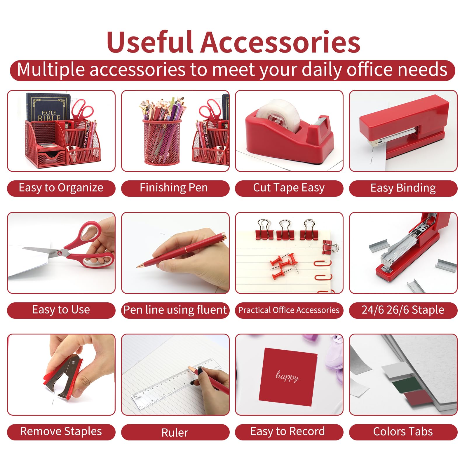 🏆Durability Champ🏆These red desk organizers and accessories are built tough, ready to handle the daily office grind. They will withstand the toughest challenges, just like a superhero in a red cape! No matter how many papers you staple, how much paper you cut or how many pieces of tape you use, this combo will stand up to the test of time.