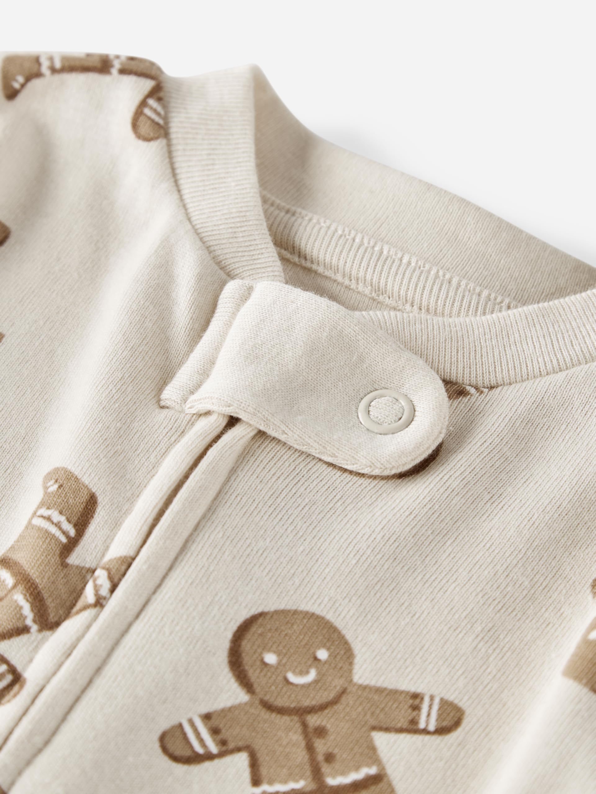 Description Cuddle baby up in this soft, certified organic cotton sleep & play. Made for daily adventures in tummy time, nap time and beyond, this piece is blooming with thoughtful details like a 2-way zipper to keep baby's arms & torso warm during diaper changes, plus built-in footies to keep tiny toes cozy. In our exclusive print, this one piece is wildly cute!
