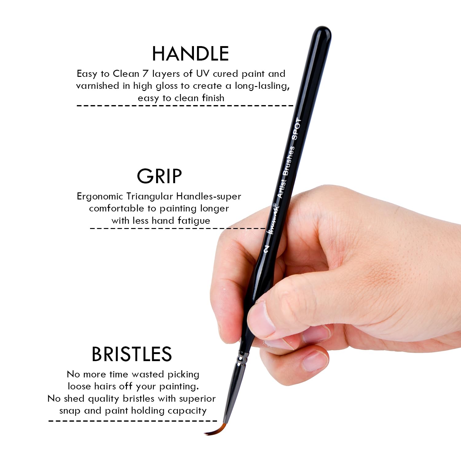 DESIGNED HANDLE: Brusarth Detail paint brushes features a long, sturdy, well designed, ergonomic triangular handle; perfect combination between balance and comfort, It's easier to control for painting long hours, And they won't roll off the table