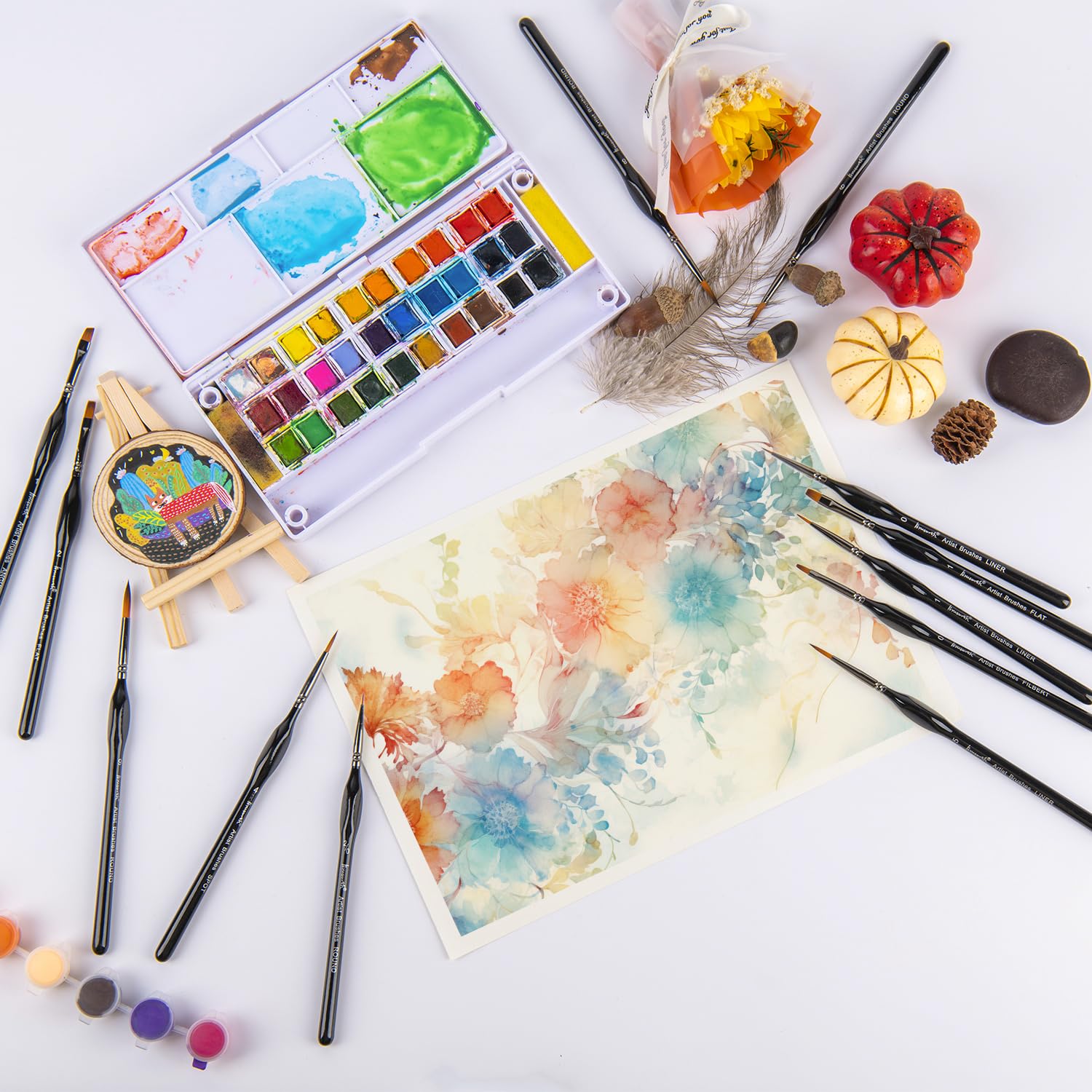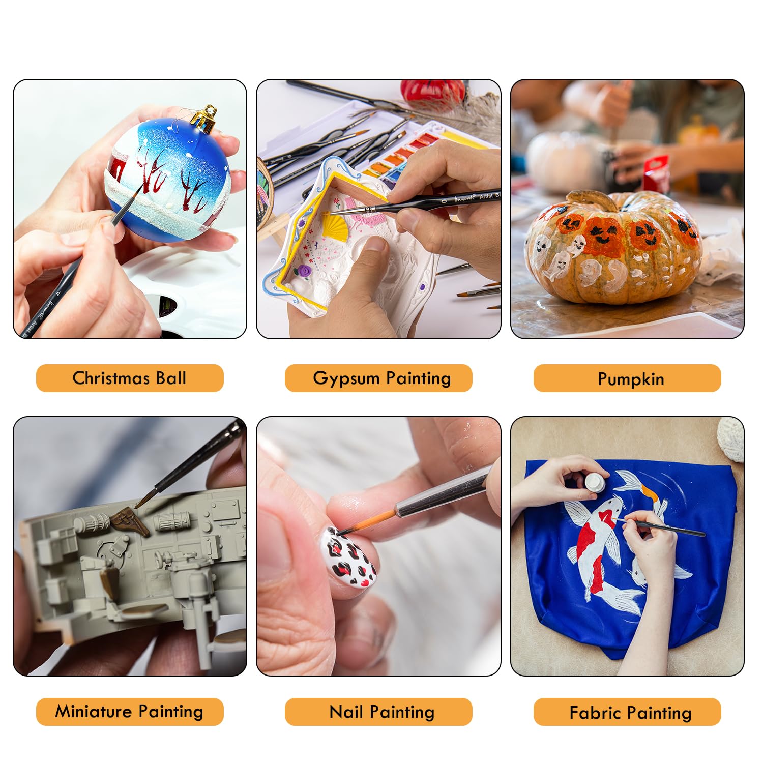 PERFECT FOR PRECISE PAINTING: Tiny tip paint brushes allow you to do fine detailing and art painting, precisely reaching tight tiny points; Fine detail paint brush can handle various paintings such as acrylic, watercolor, tempera, enamel, gush, oil