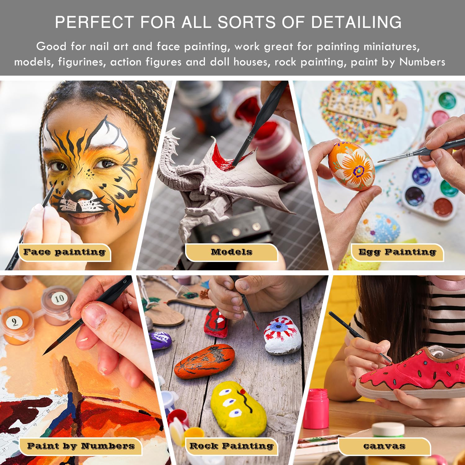 ALL-PURPOSED DETAIL PAINT BRUSHES: Have well balanced for better control and precision painting, so it's effortlessly to draw nice tight lines and point;Perfect for painting miniature figures, miniature painting kit, rock painting, arts and craft, face, nail, ceramic models and paint by numbers