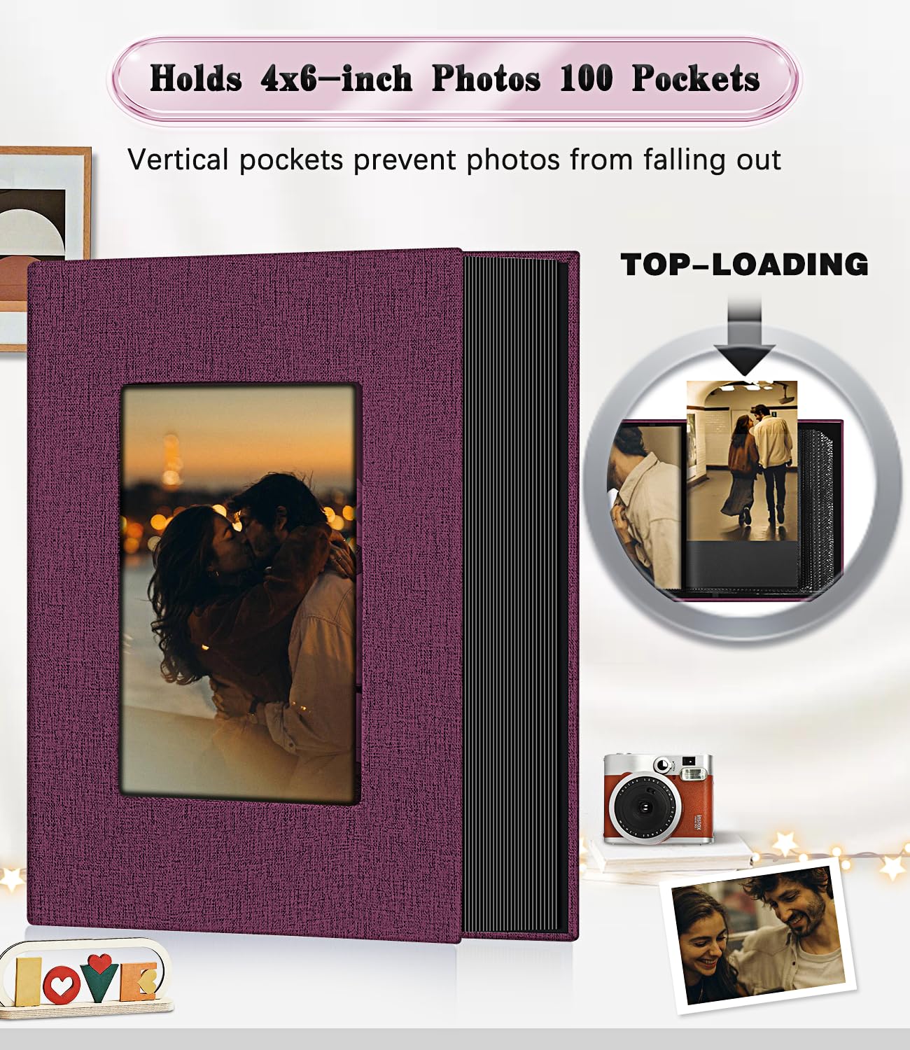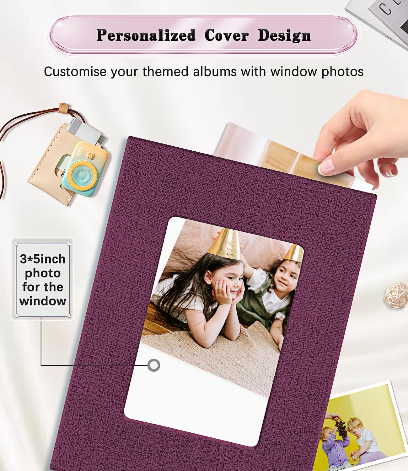 💖 Exquisite Window Design: This 4x6 photo album cover is wrapped in high quality linen, the classic linen cover not only adds vintage sophistication, but also ensures durability and protects your precious photos.The cover of the album has a flexible openable window with replaceable window photos (3*5 inch), customised to change your personal theme album.