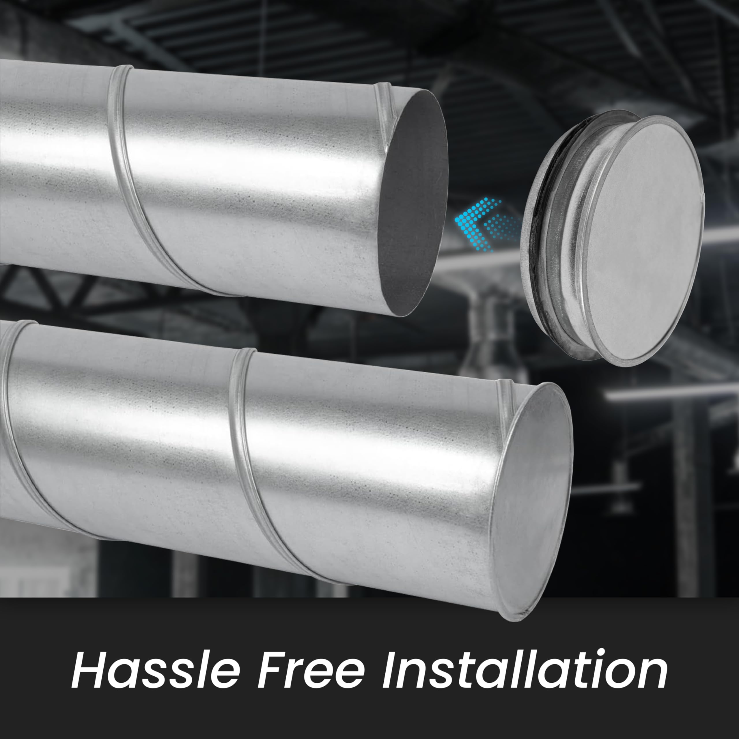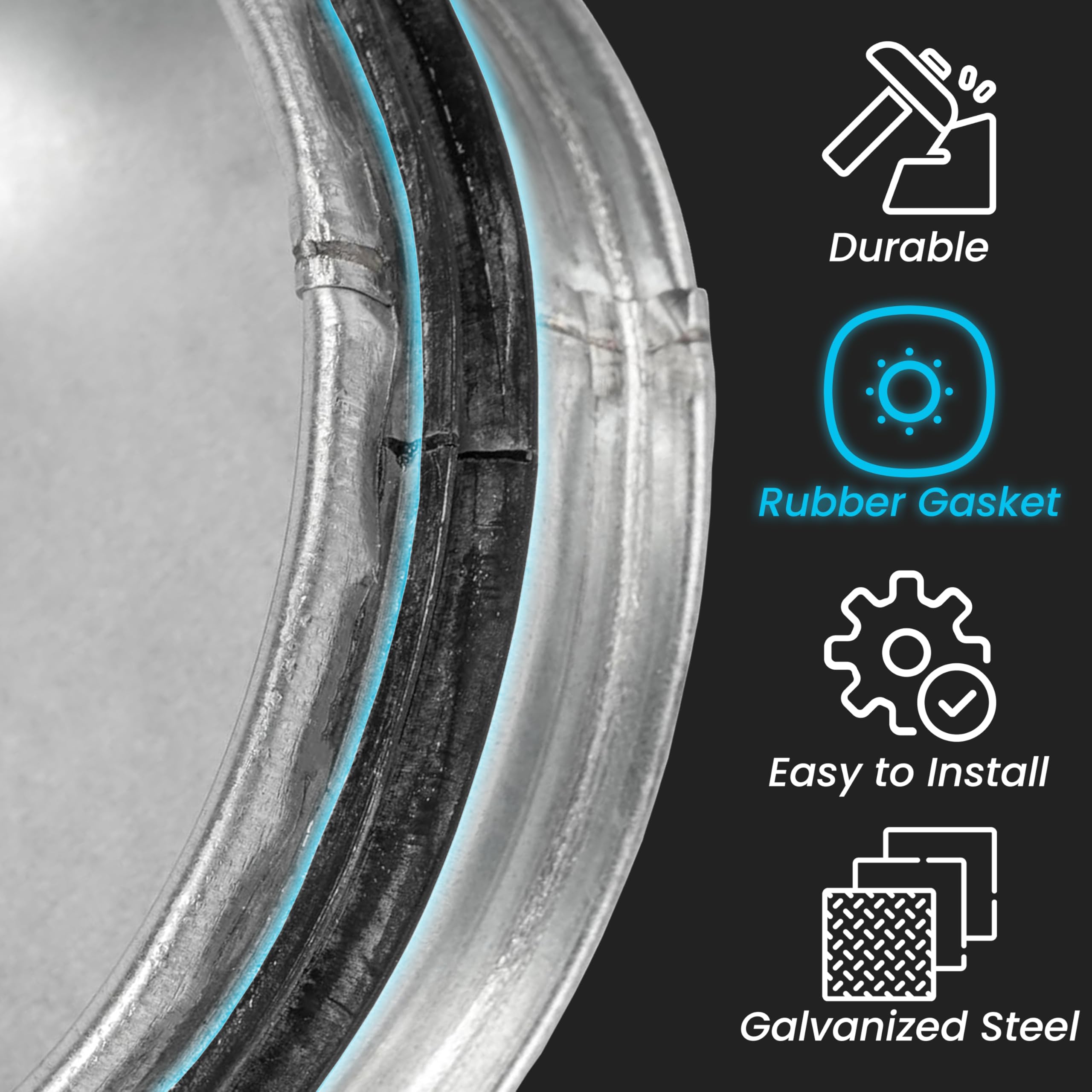 Easy to installation process - the end cap has to be pushed into the pipe as rubber gasket will create tight air seal. Cap can be secured with clamps, rivets or caulking
