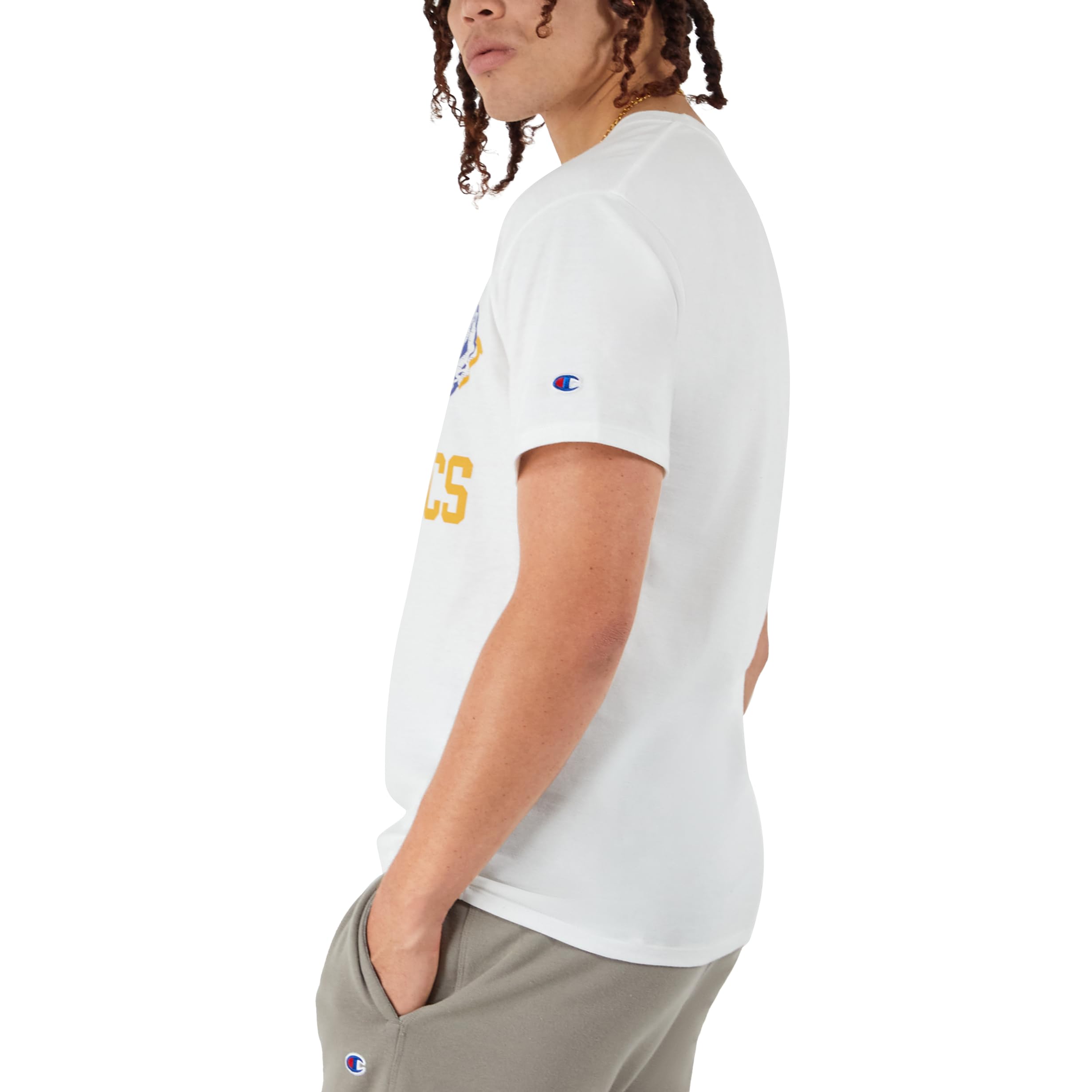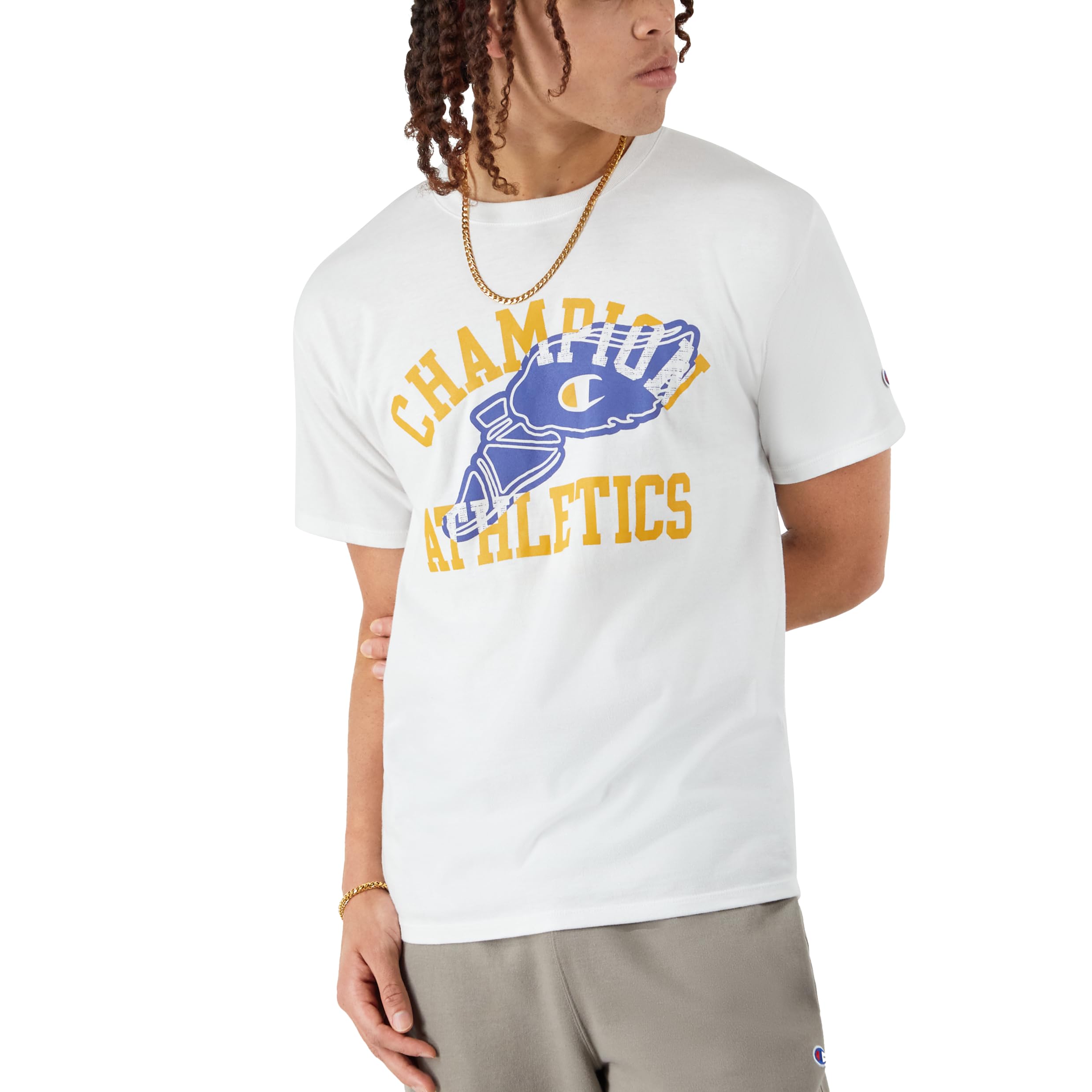 Description ALL-STAR STYLE. Outshine the competition with star graphics that bring the style. With unmatched comfort and softness, our graphic T-shirt for men is your best companion, from sport to street. Crafted with attention to detail and built to be a longtime favorite, it has a ribbed collar and sturdy stitchwork. Iconic C logo hits at the sleeve, showing everyone what you’re all about. Pair this men’s T-shirt with your favorite Champion joggers and shorts for a rounded out sporty look that can’t go wrong.