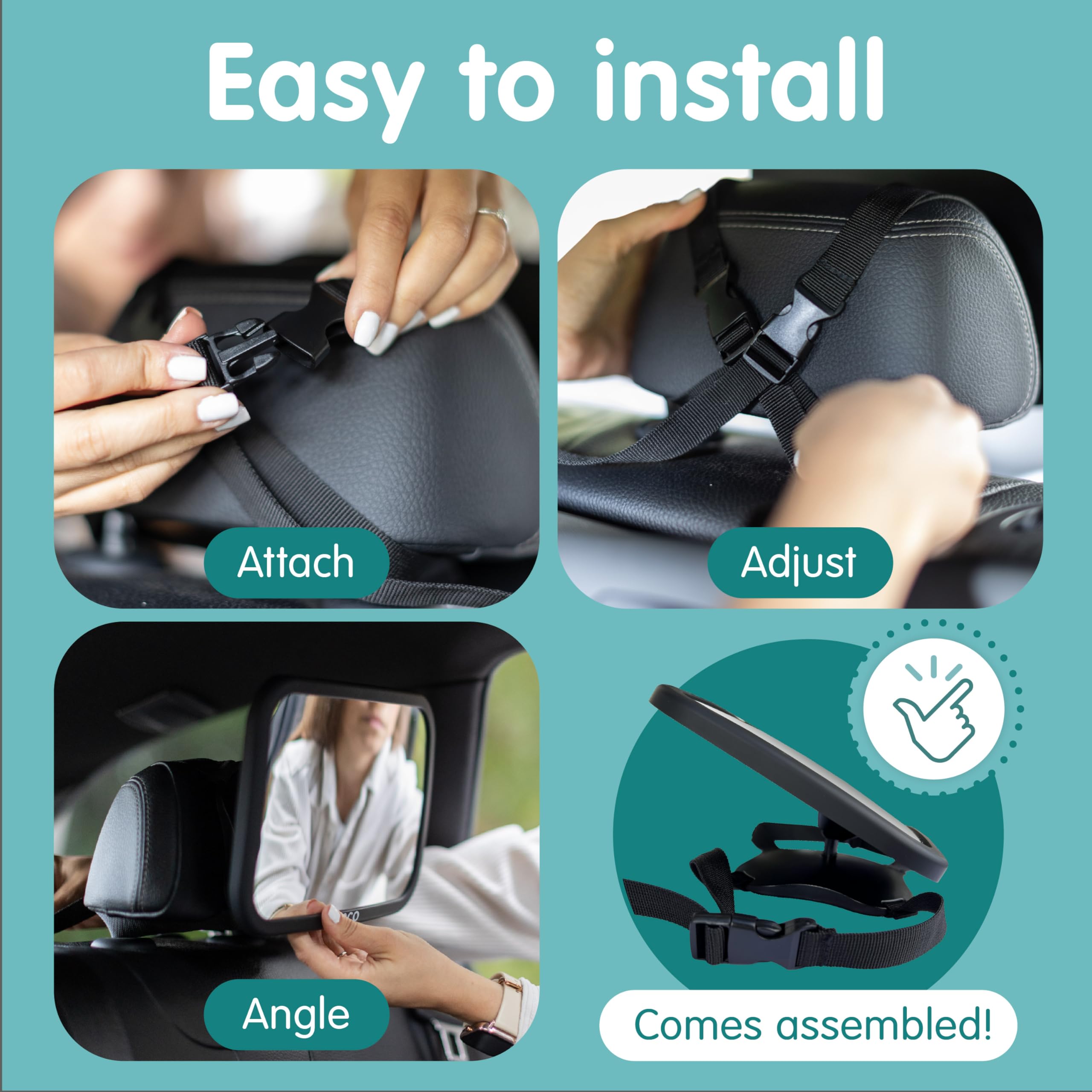 2-TIME AWARD-WINNING BABY CAR MIRROR: Keep an eye on your little one in the back with Onco's 360° backseat mirror! The convex-shaped infant mirror for car journeys offers a wide and clear view of your baby.