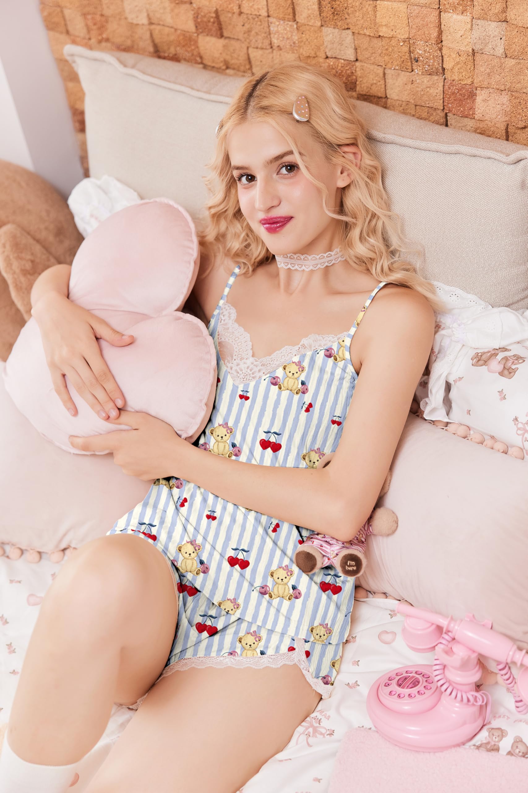 【Lingerie for Women】The Cami of Pajamas Set for women is designed with sexy v neck & lace trim & adjustable spaghetti strap & camisole for easy wearing and adjustment to the comfort position you want. Slim fit crop camisole, making you more attractive and charming