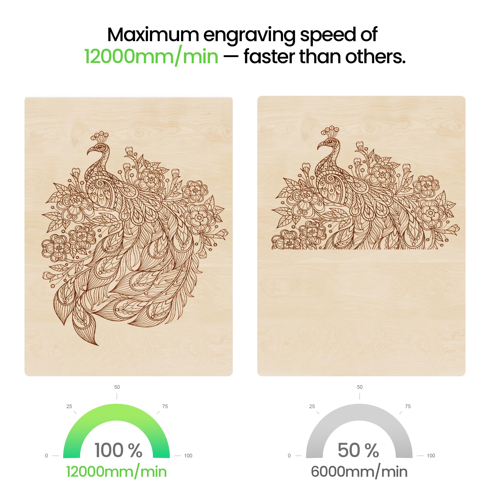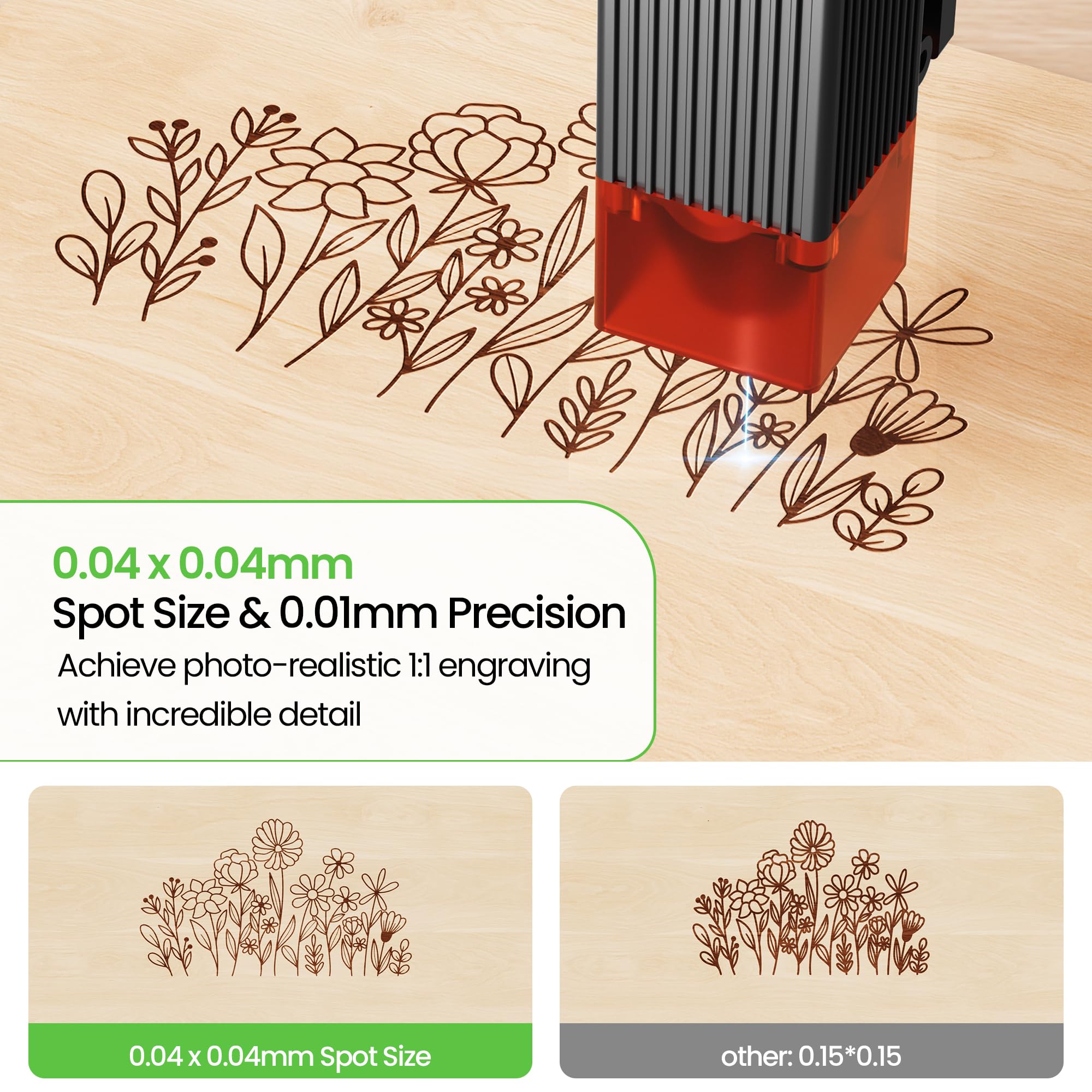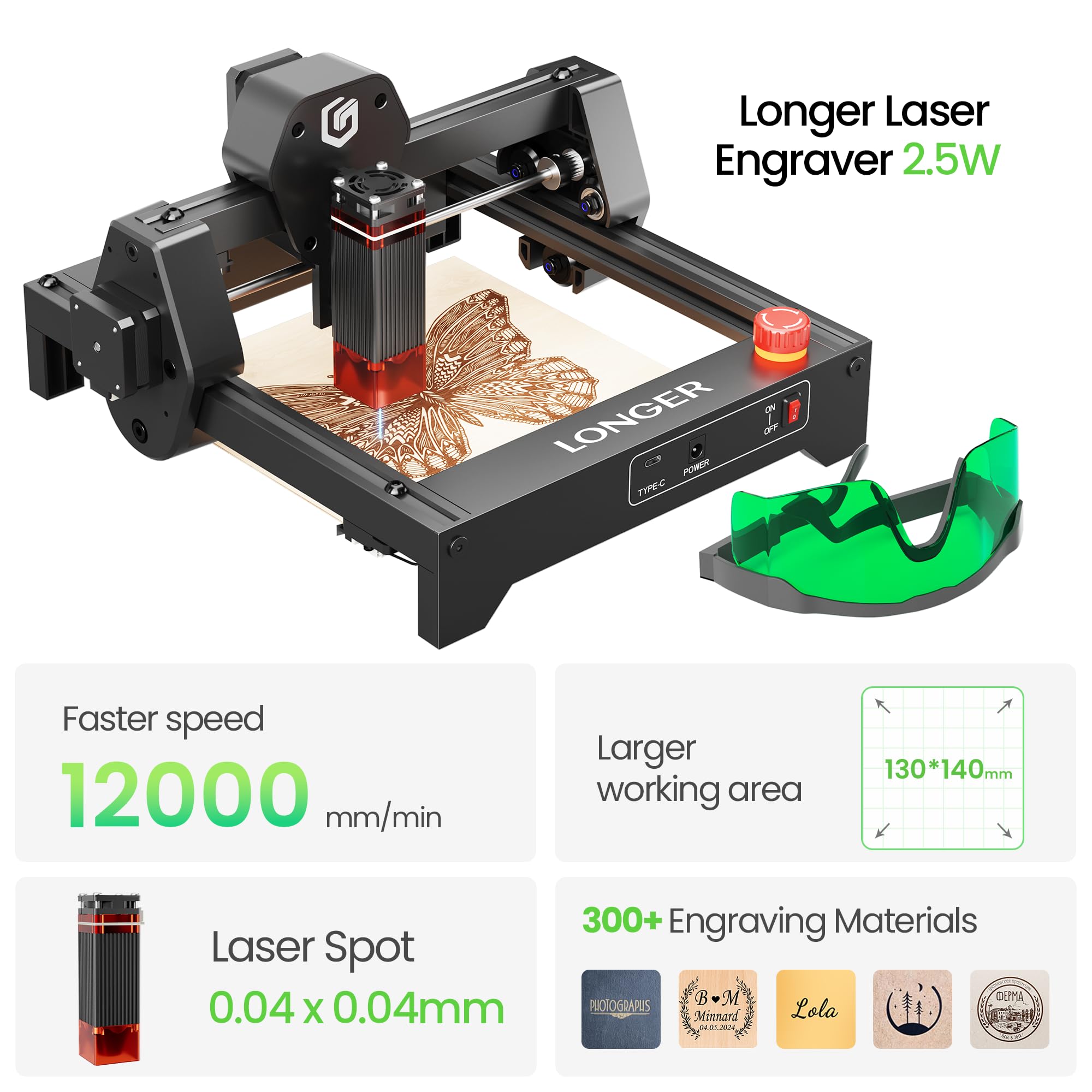2500mW Engraving and Cutting: The Longer engraving machine offers a 2500mW laser output and a Class 4 laser for safe operation. With a speed of up to 12,000mm/min, this upgraded engraving machine is more efficient than others with the same power. Its spot size of 0.04*0.04mm ensures photo-realistic 1:1 engravings. This cnc machine can not only carve intricate and detailed designs but also provides some cutting capabilities for a variety of materials.