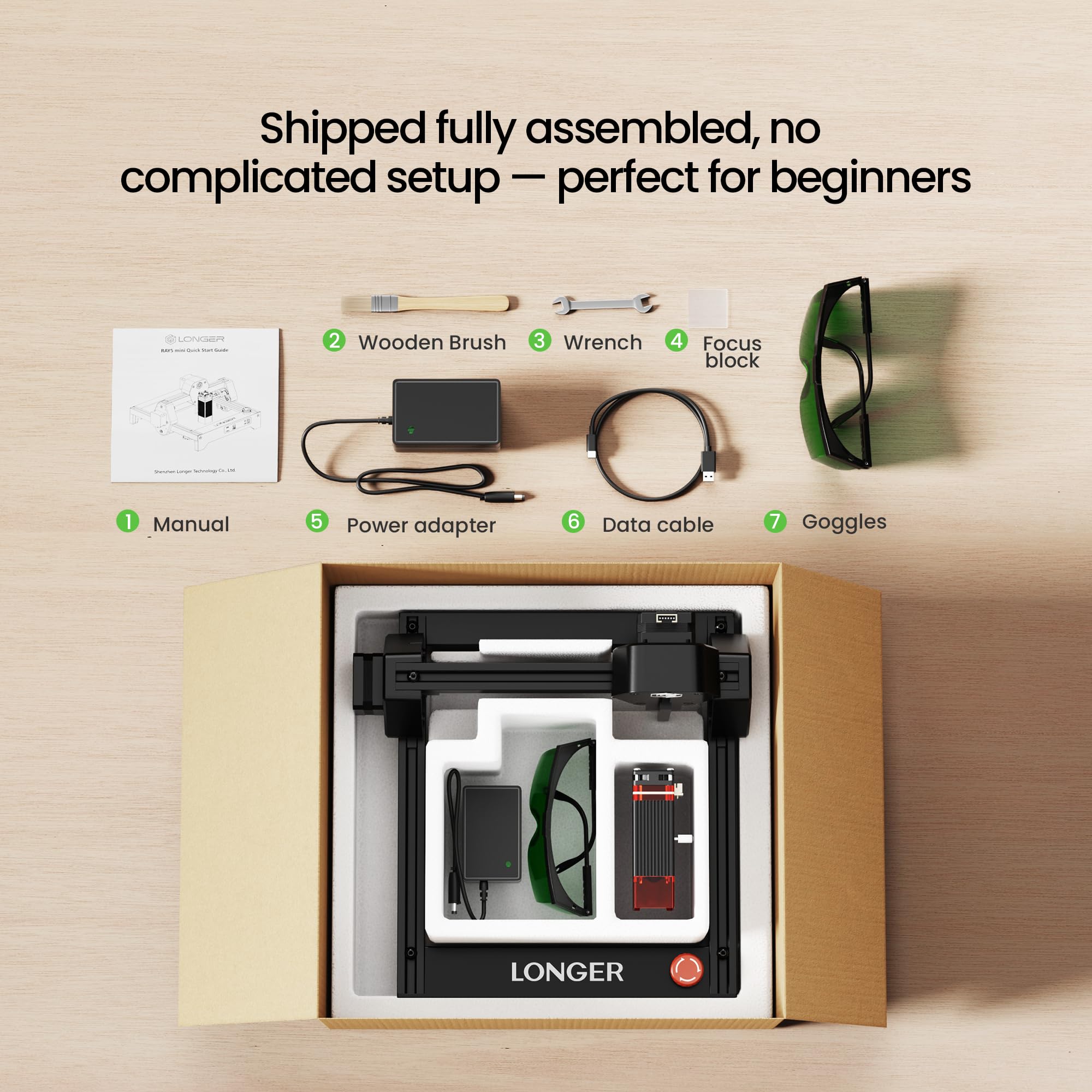 Beginner-Friendly, One-Piece Delivery: The Longer laser engraving tool is perfect for beginners—no installation required. Even users with no prior experience can easily get started by following the user manual. It also comes with protective goggles for eye safety and a magnetic laser cover for added simplicity and convenience.