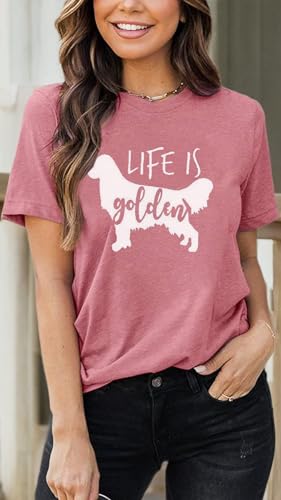 Design:Cute golden retriever tshirt,nice golden retriever design tee,life is golden with a doodle tshirt,women's summer short sleeve tops blouse trendy casual tshirt short sleeve tops.