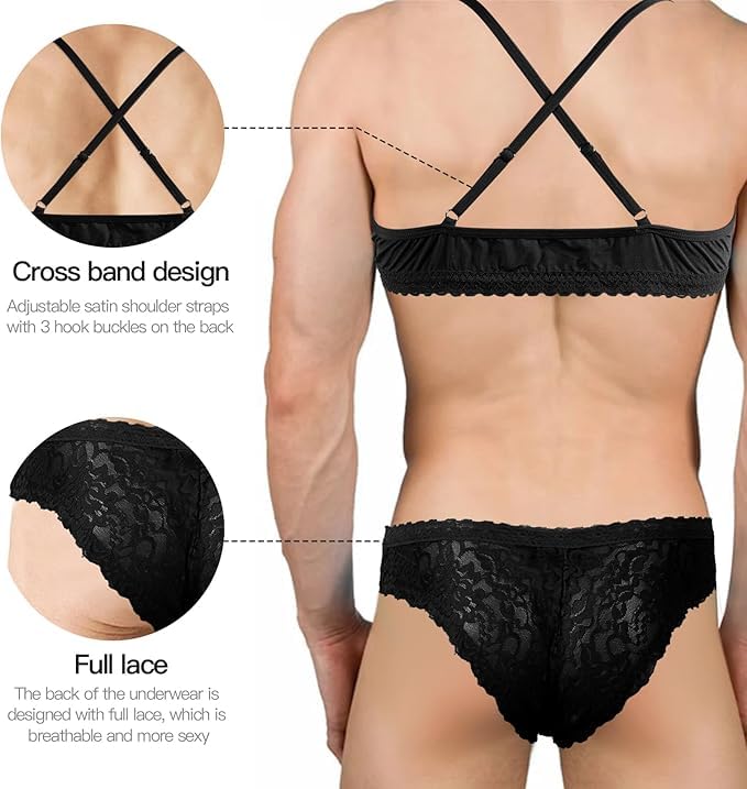 This Lingerie Set is designed for men who want to express their sexy side and embrace it with confidence. The sissy clothes for men includes man-designed thong underwear, designed for a snug yet comfortable fit; as well as a breathable, and stretchable materials. The bra gives an added flash of feminine style and will make you feel especially Sexy.