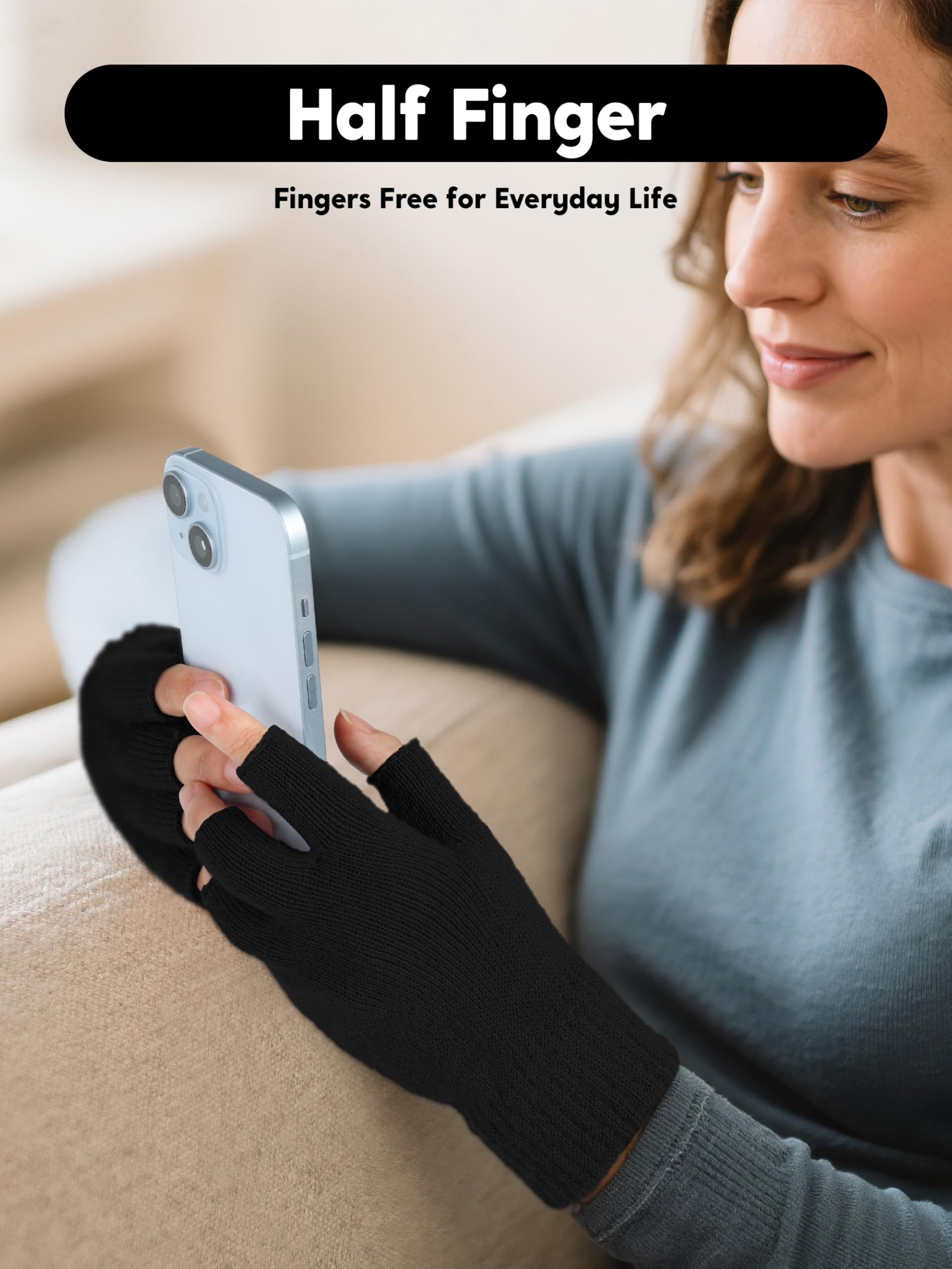 Unisex design: classic shape, fingerless glove design suitable for men and women, can be used indoor or outdoor, such as taking notes, cycling, using computer or smartphone, outdoor sports, easy to use