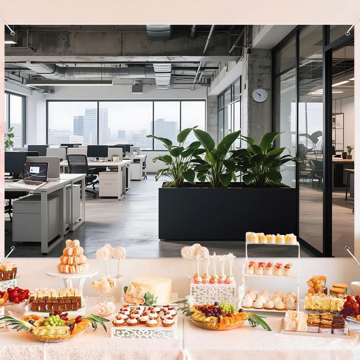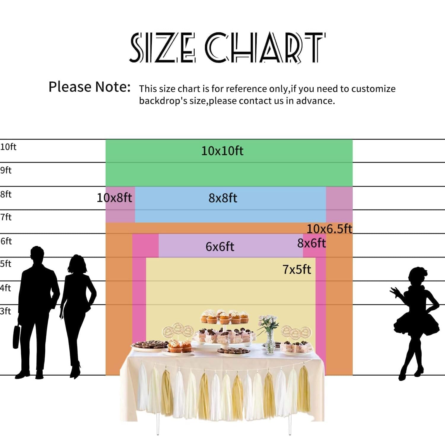 PACKAGE INCLUDES:A piece party backdrop, the size is about 7x5ft there are copper grommet in the four corners of the banner for hanging. The package only includes birthday backdrop along with 20 feet/6 m string, without stand.
