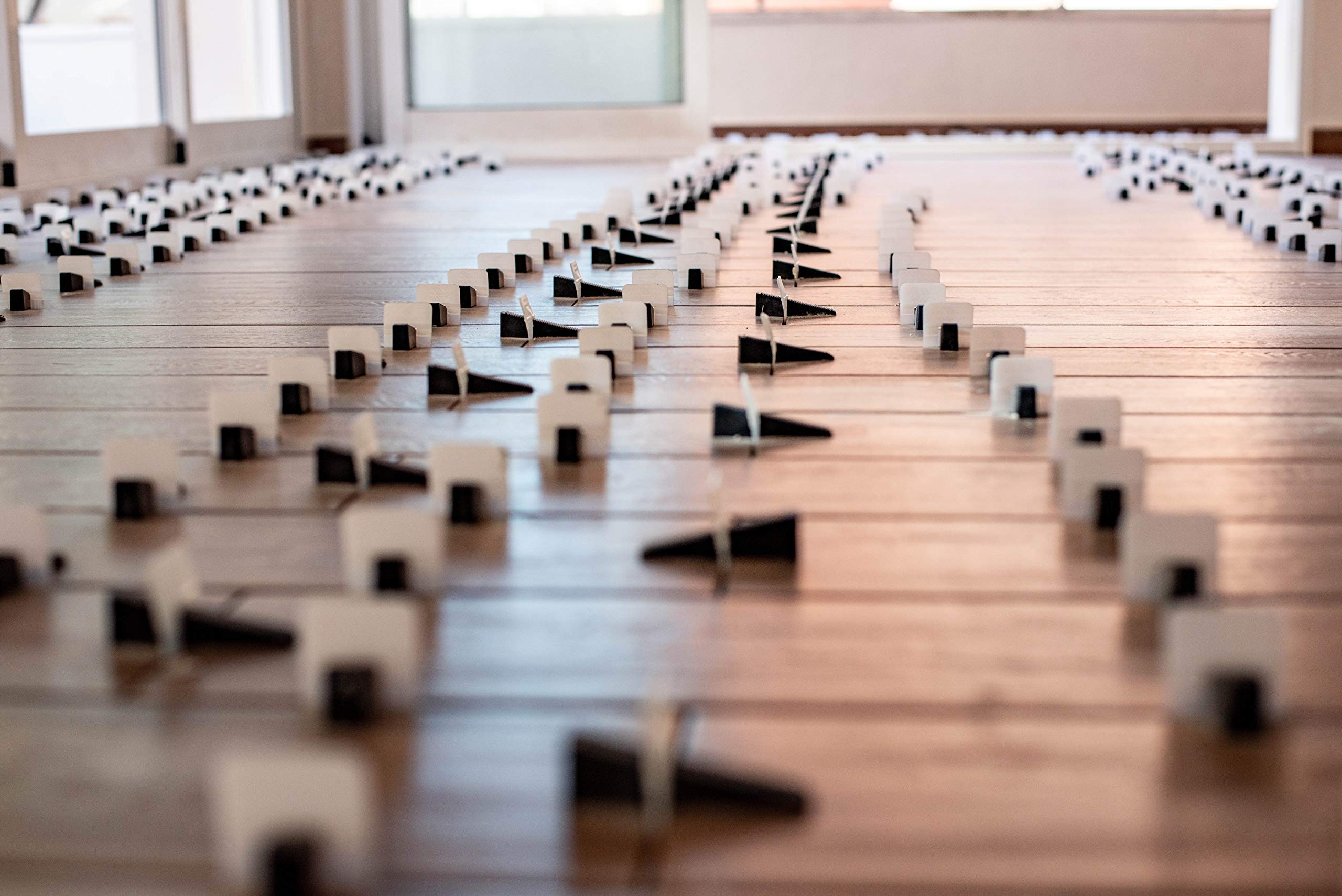 The system ensures flatness between tiles to avoid movement during the mortar setting