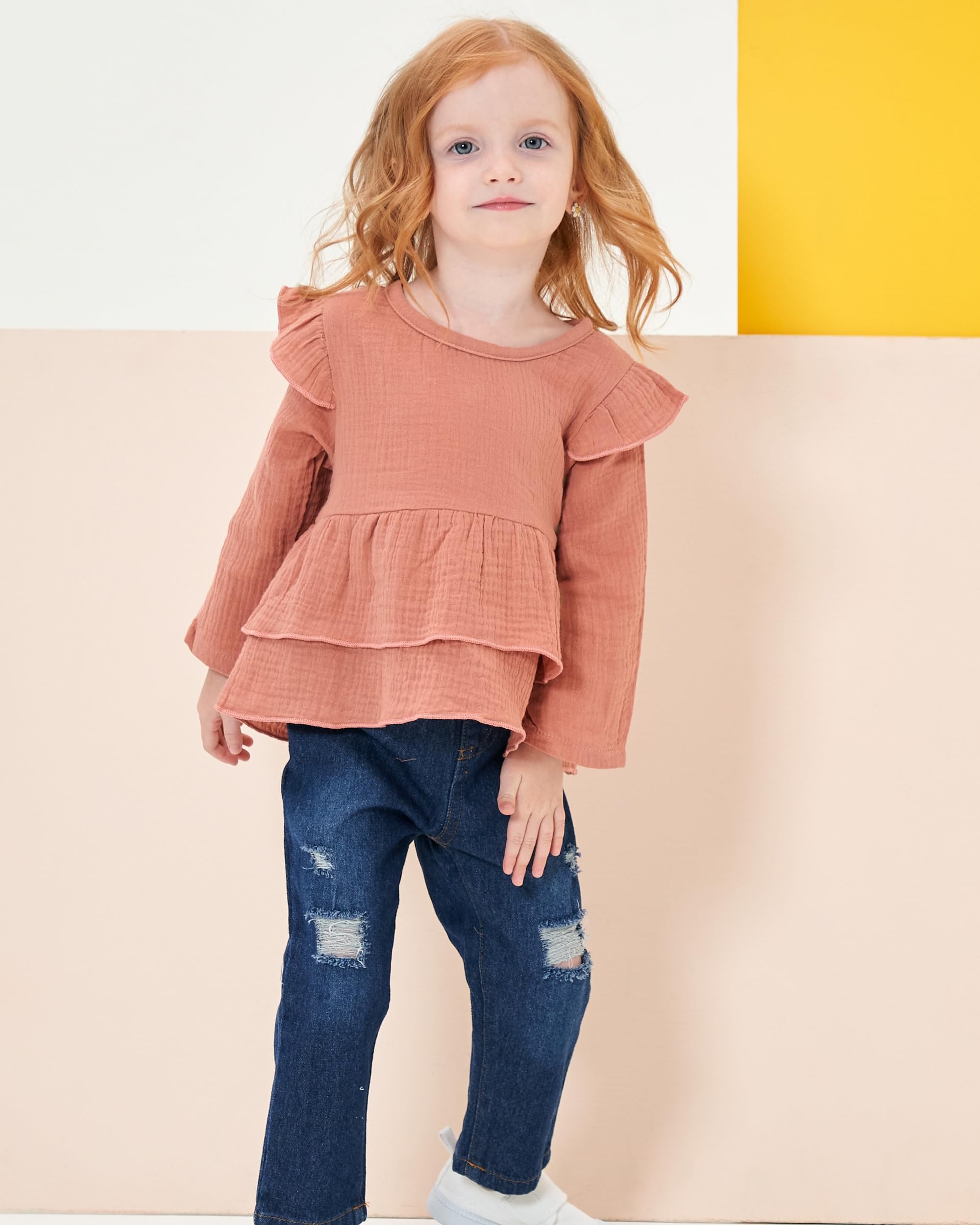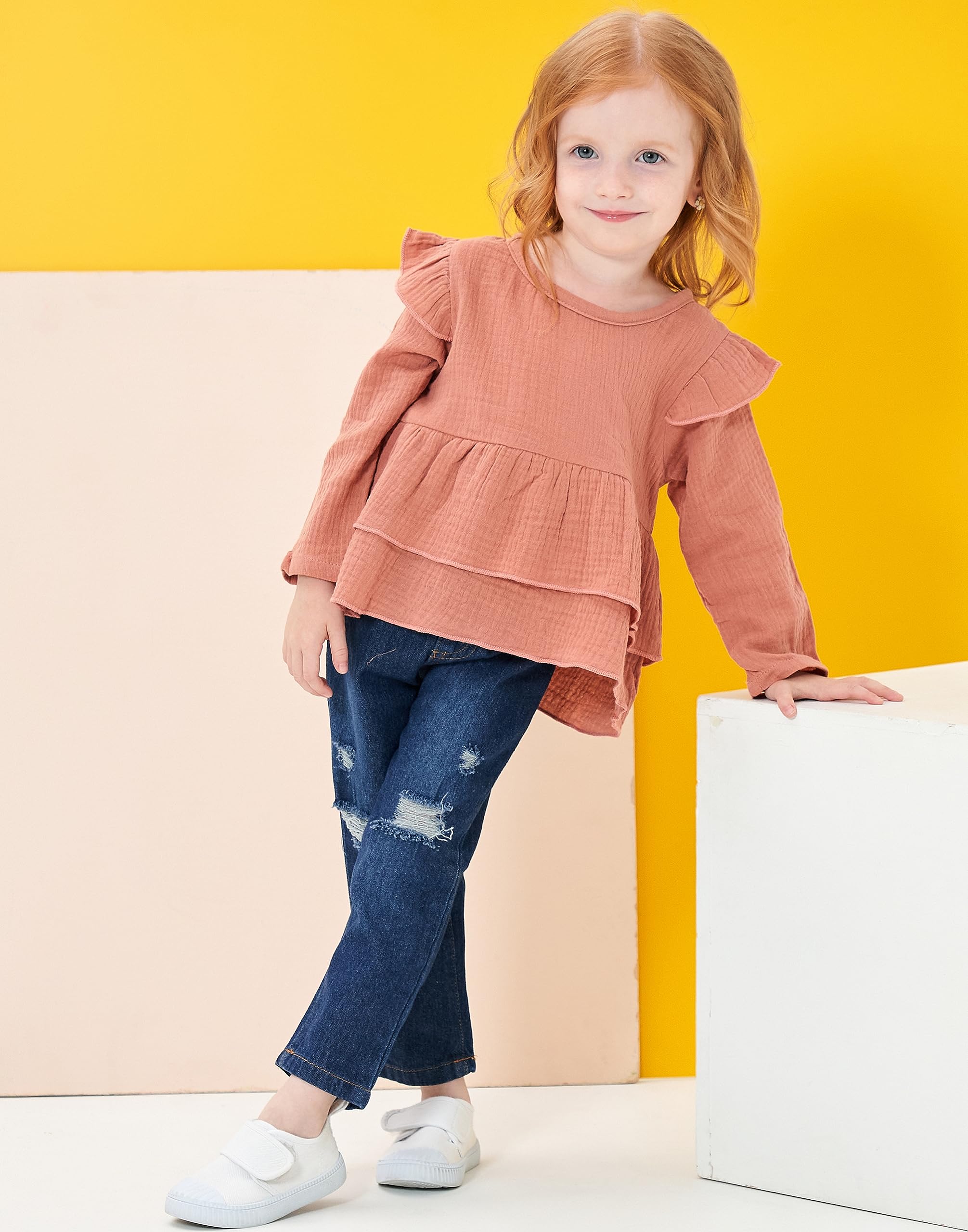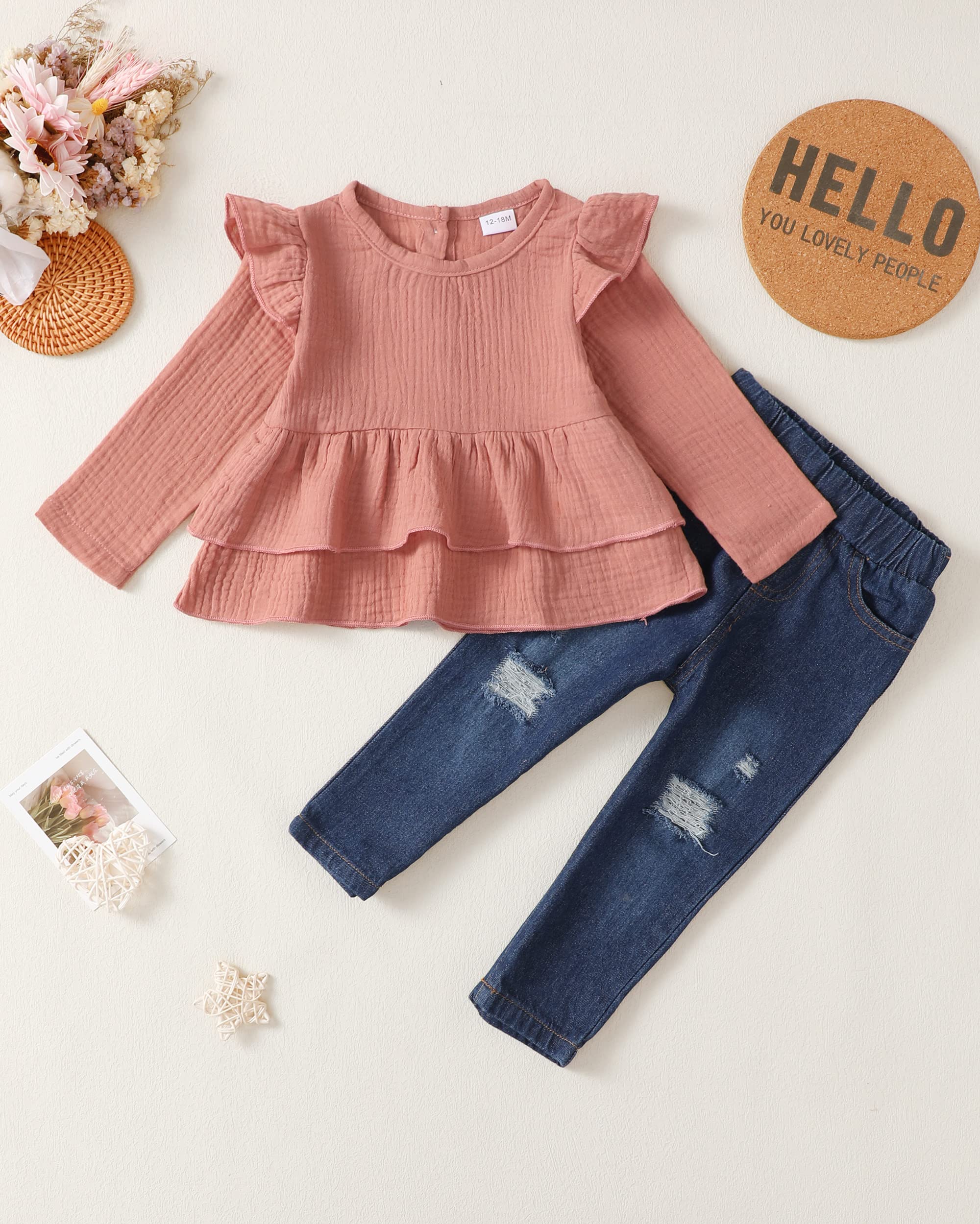Fashion Design: Our baby girl outfits is designed with a crew-neck long sleeve ruffle shirts and stylish ripped jeans that will make your little girls look so cool. This is a great baby girl gifts for your princess.