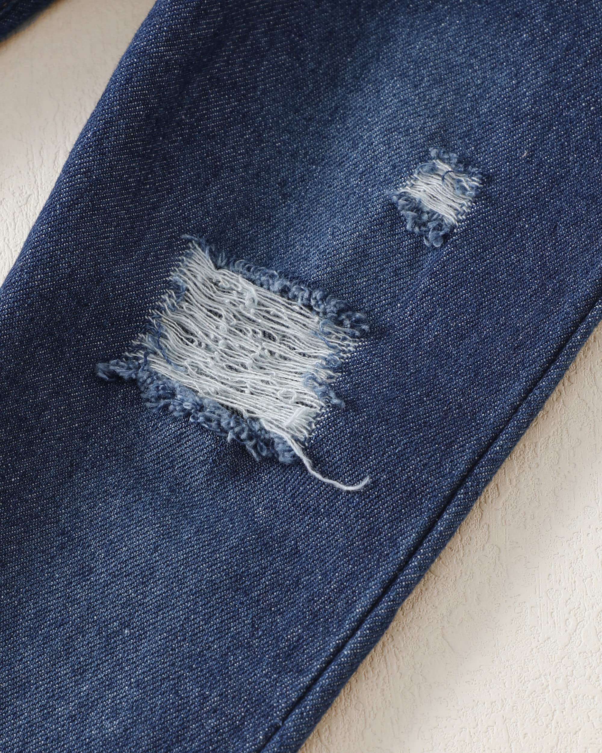 Package Included: 2pcs outfits, 1 x shirt + 1 x ripped denim pants. Both hand wash and machine wash are suitable.