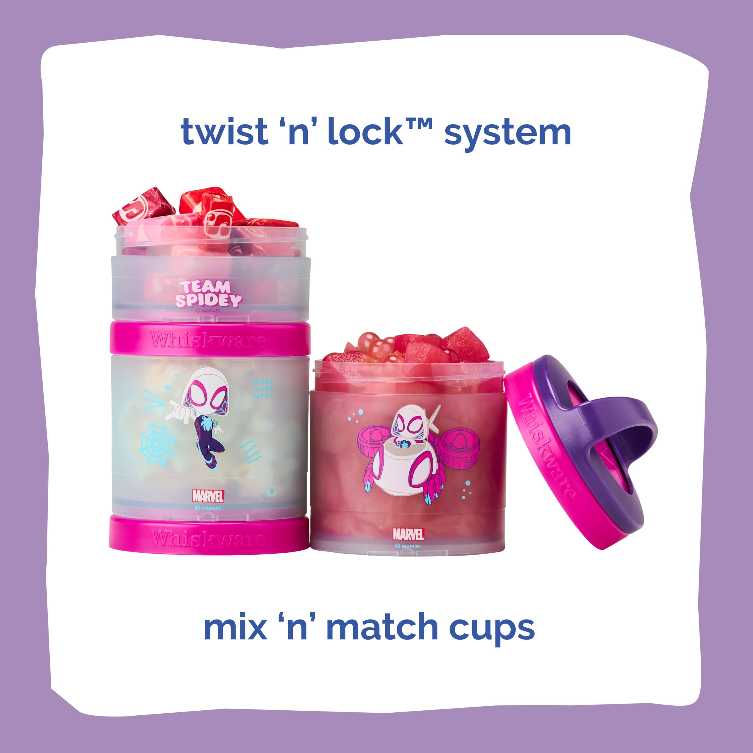 Here to turn snack time into playtime. Whiskware’s durable, low-mess snack jars have a Twist ‘n’ Lock™ system that not only lets you pack and go in a flash—but it also lets you mix and match all your favorite characters! Designed for little hands to hold, our snacking containers fit in cupholders, diaper bags, backpacks and more—making them an awesome food storage choice for daycare, school, and on-the-go airplane or car travel. But most of all, because we care about safety and convenience, Whiskware snacking containers are BPA free and dishwasher safe for worry-free use and cleaning. So if you want healthy snacking to be simple (and loads of fun), don’t miss these containers!