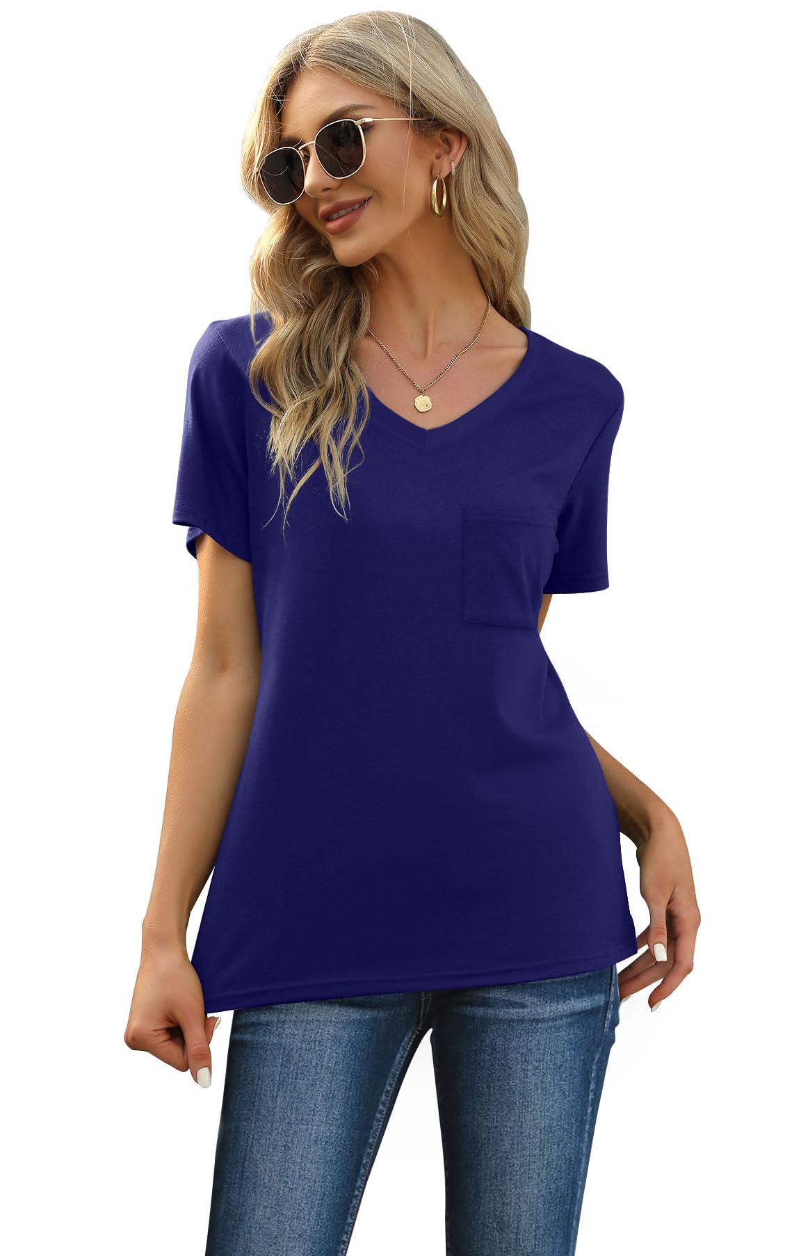 FEATURE --- The package including 1 x short sleeve t-shirt and 1 x short. The top has classic v neckline and a pocket. The short has elastic drawstring and side pockets. The cute top is perfectly complemented by shorts. Casual and sexy in daily life.