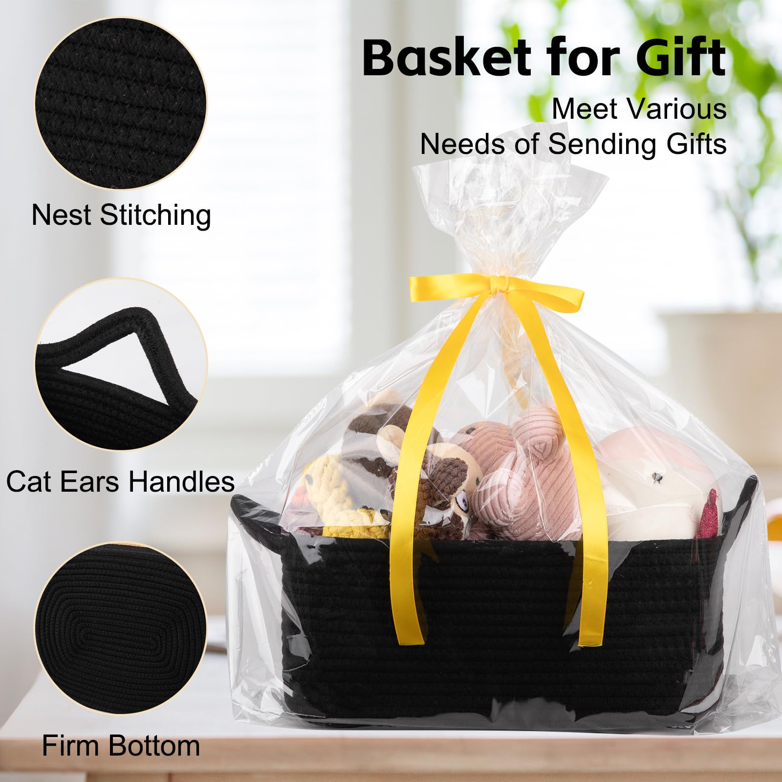 Cute and practical handle: Each baby basket has uniquely cat ear handles, which are cute and practical. The handles are on both sides of the basket for easy grip and movement. The connection between the handle and the small basket is tightly sewn together, so you don't have to worry about the basket breaking when lifting heavy objects