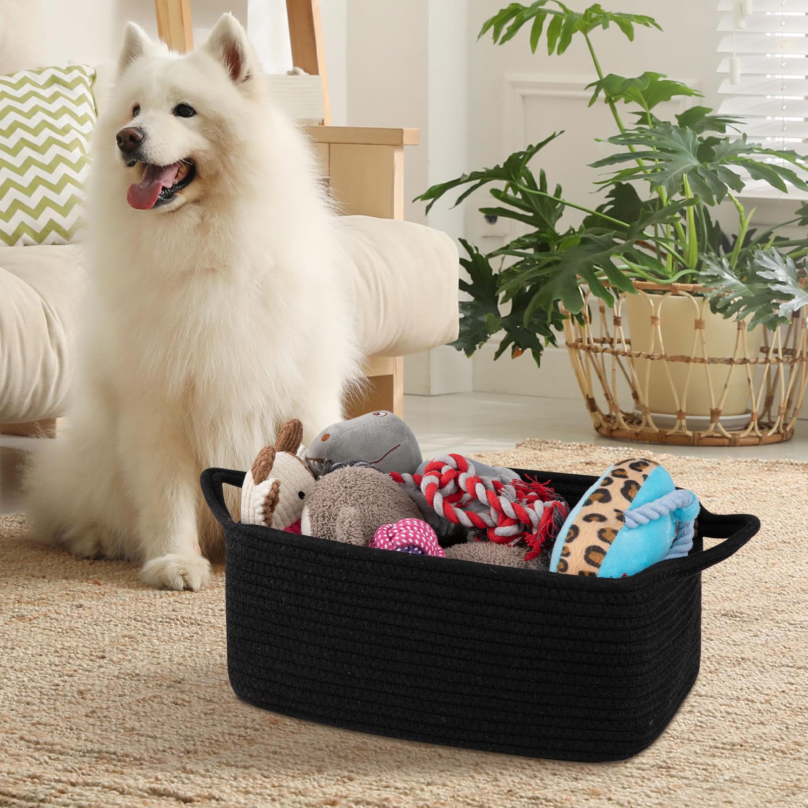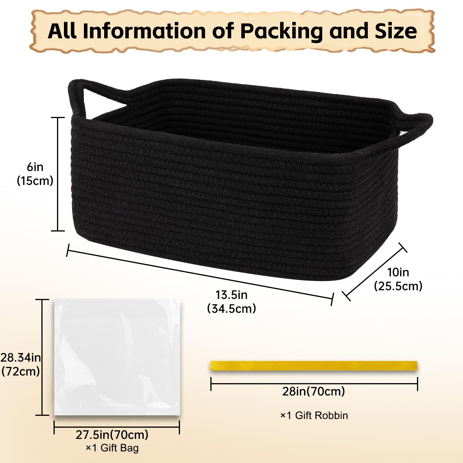 Safe Material: The basket is 13.5*10*6in and made of 100% pure cotton material, no chemical material, no odor, soft and skin friendly. It is no sharp edges that may scratch the floor, especially suitable for children and pets.We are passionate about providing you and your family with a healthy and clean home atmosphere