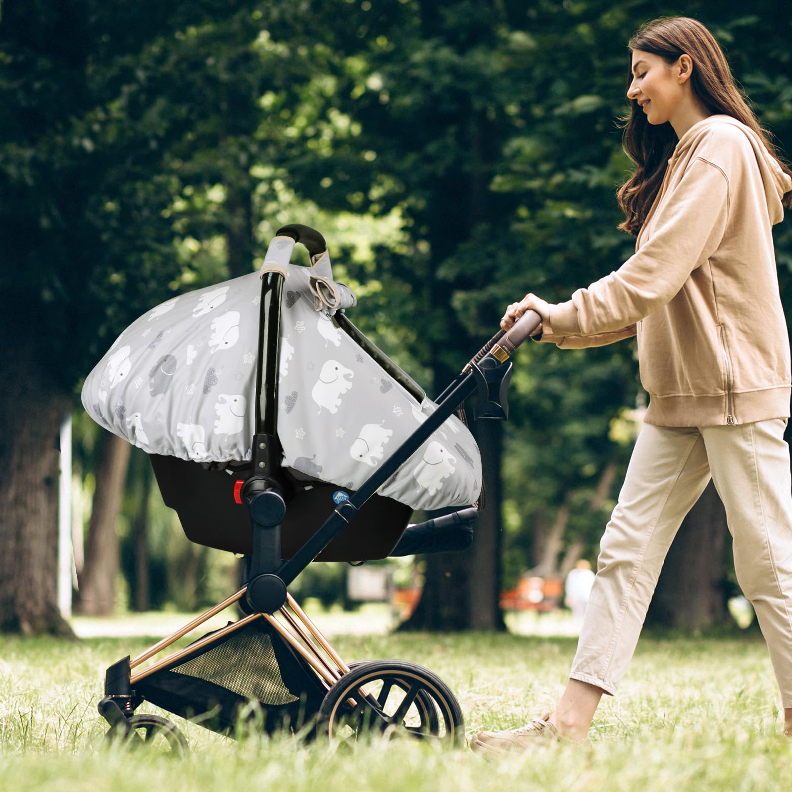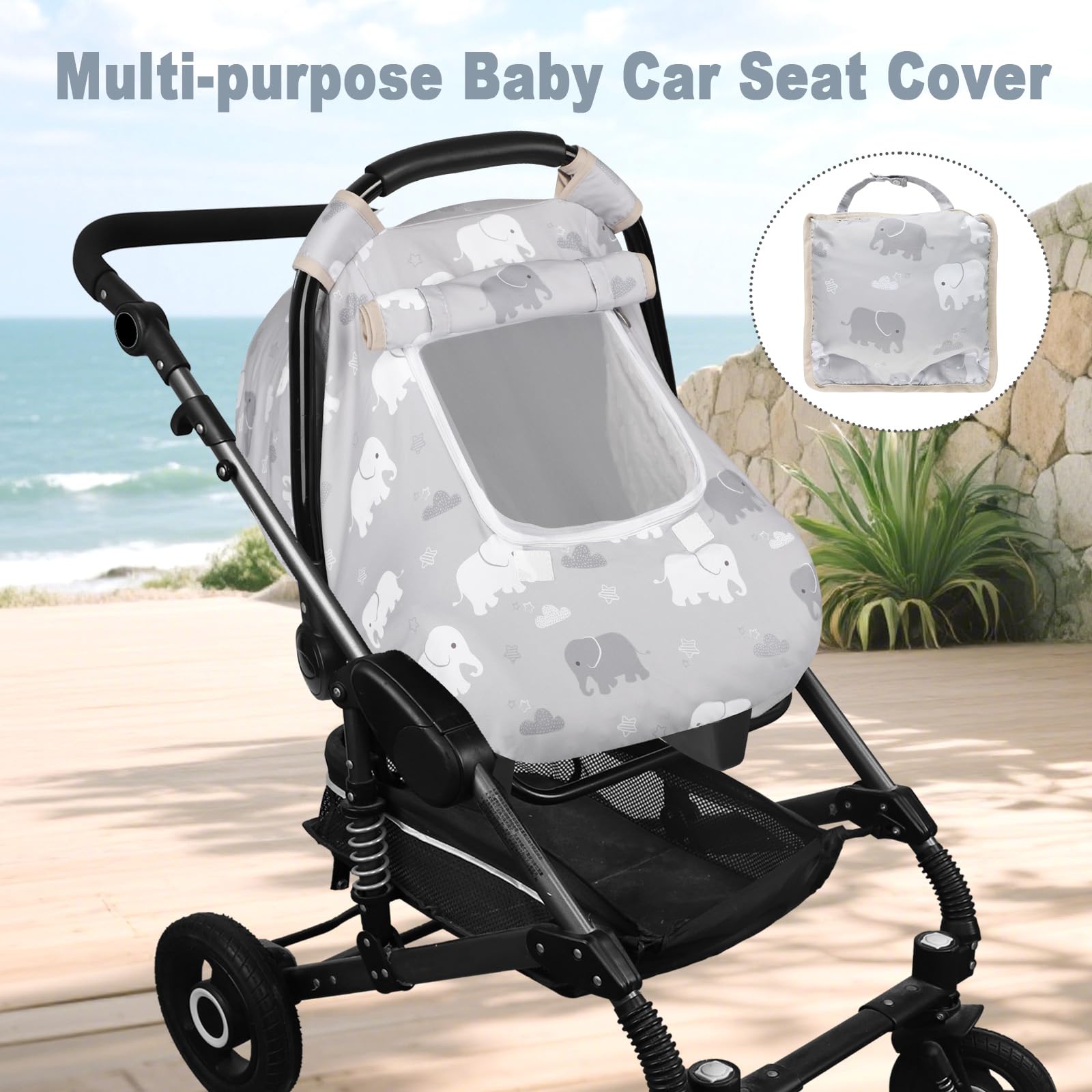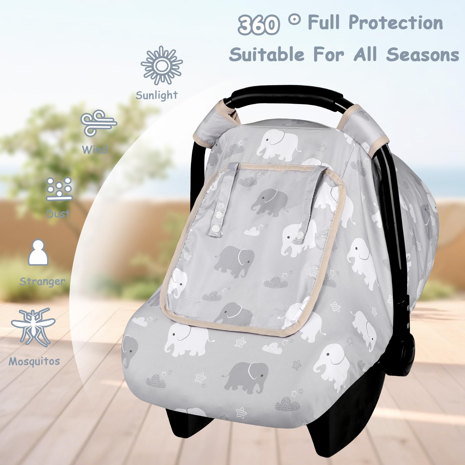 Soft & Comfortable Baby Car Seat Canopy: TANOFAR infant car seat cover is made from durable elephant polyester fabric and features a breathable, soft minky dot lining—combining style and comfort. This essential baby travel accessory offers medium thickness, making it ideal for year-round use. It ensures a cozy, protected sleeping environment for your baby