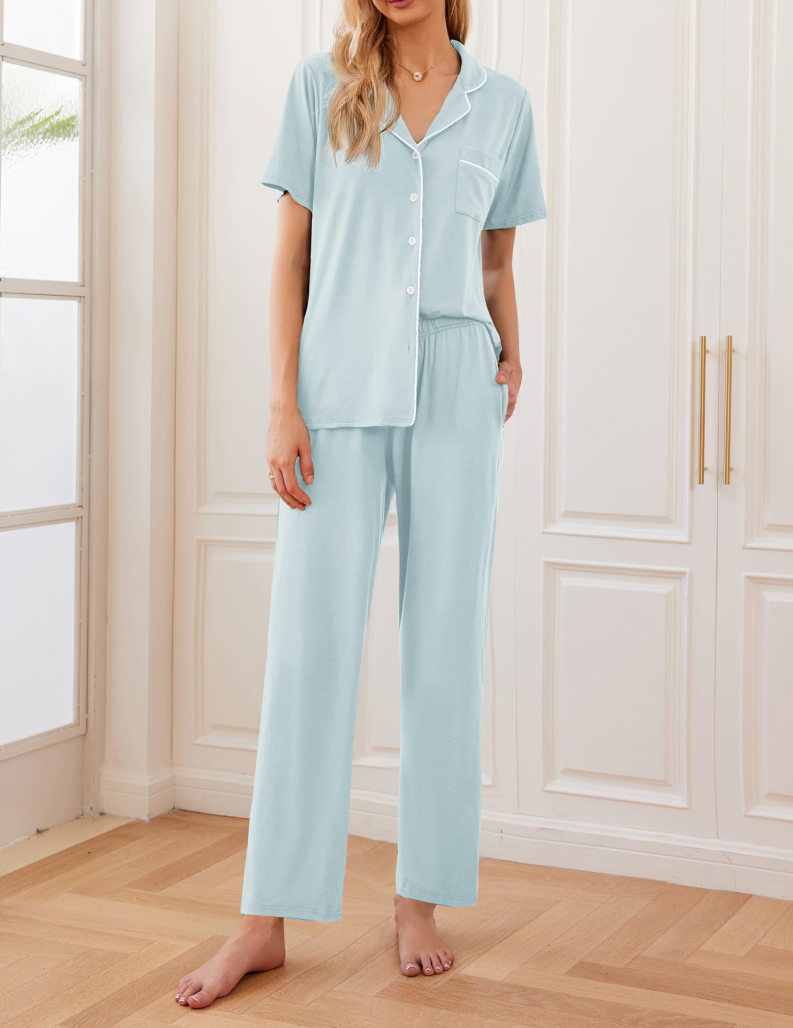 Classic Pajamas Set: Casual short sleeve sleepwear is perfect for a relaxing day or night. You can wear it after the shower and relax completely. And it is also great for lounging, sleeping, labor, party pajamas, girls day, wedding pajamas