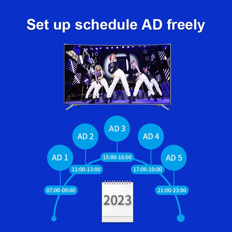 SCHEDULE AD. You can set schedule AD, make different time to play different AD.