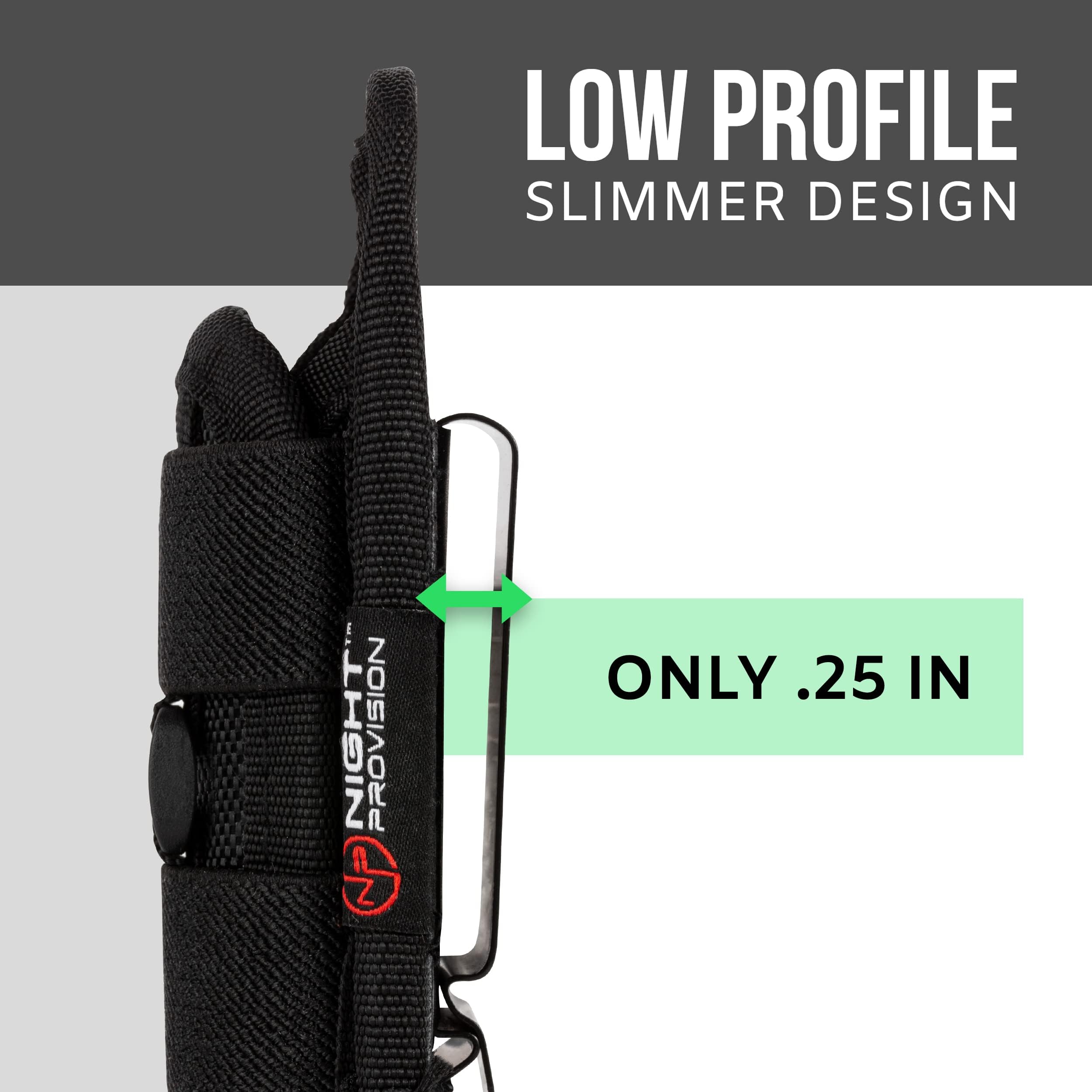 BUILT TO LAST: Improved heavy-duty metal clip design secures holster onto any belt with lasting durability. Carefully crafted stitching and stretchable nylon offers safe flexing in any position. Premium quality backed by Night Provision's 2 Year Hassle Free Replacement Warranty. [FLASHLIGHT SOLD SEPARATELY]