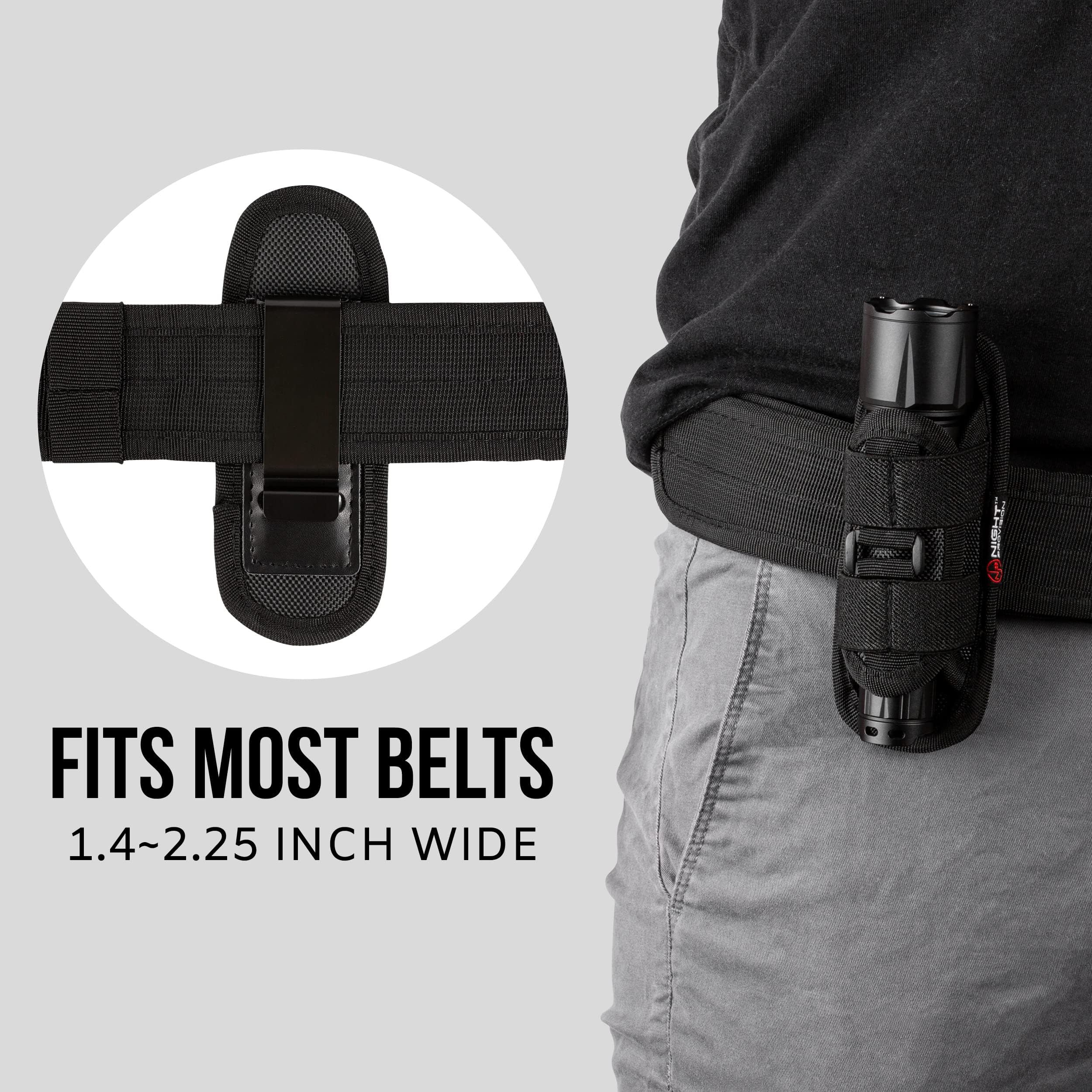 DESIGNED FOR TACTICAL BELTS: Accommodates sizes ranging from 1.4 to 2.25 inches in width. It's the ultimate companion for outdoor enthusiasts, hunters, campers, police officers, security personnel, and military personnel alike. [DOES NOT FIT DAN BROWNE DUTY BELTS] [FLASHLIGHT SOLD SEPARATELEY]