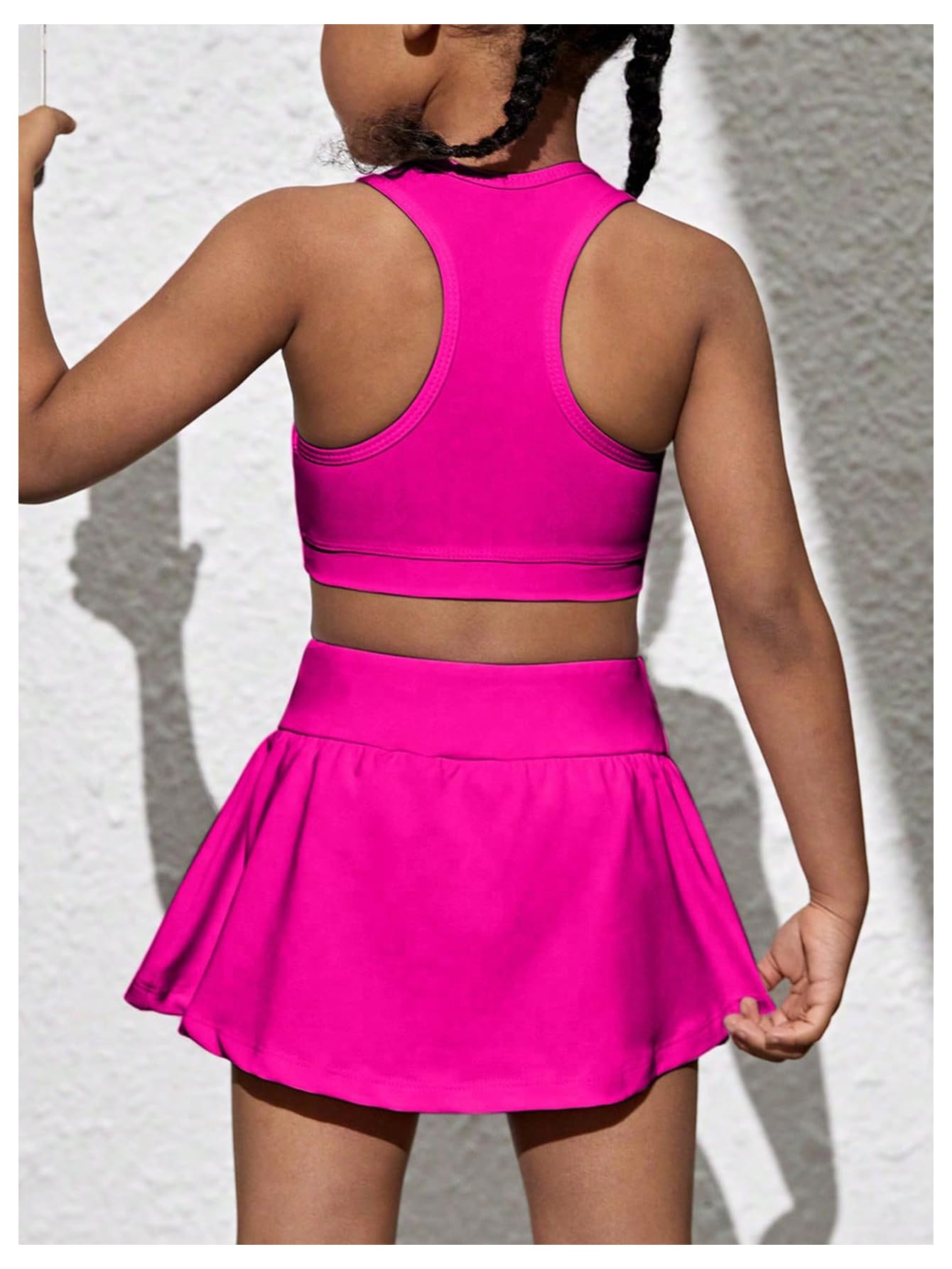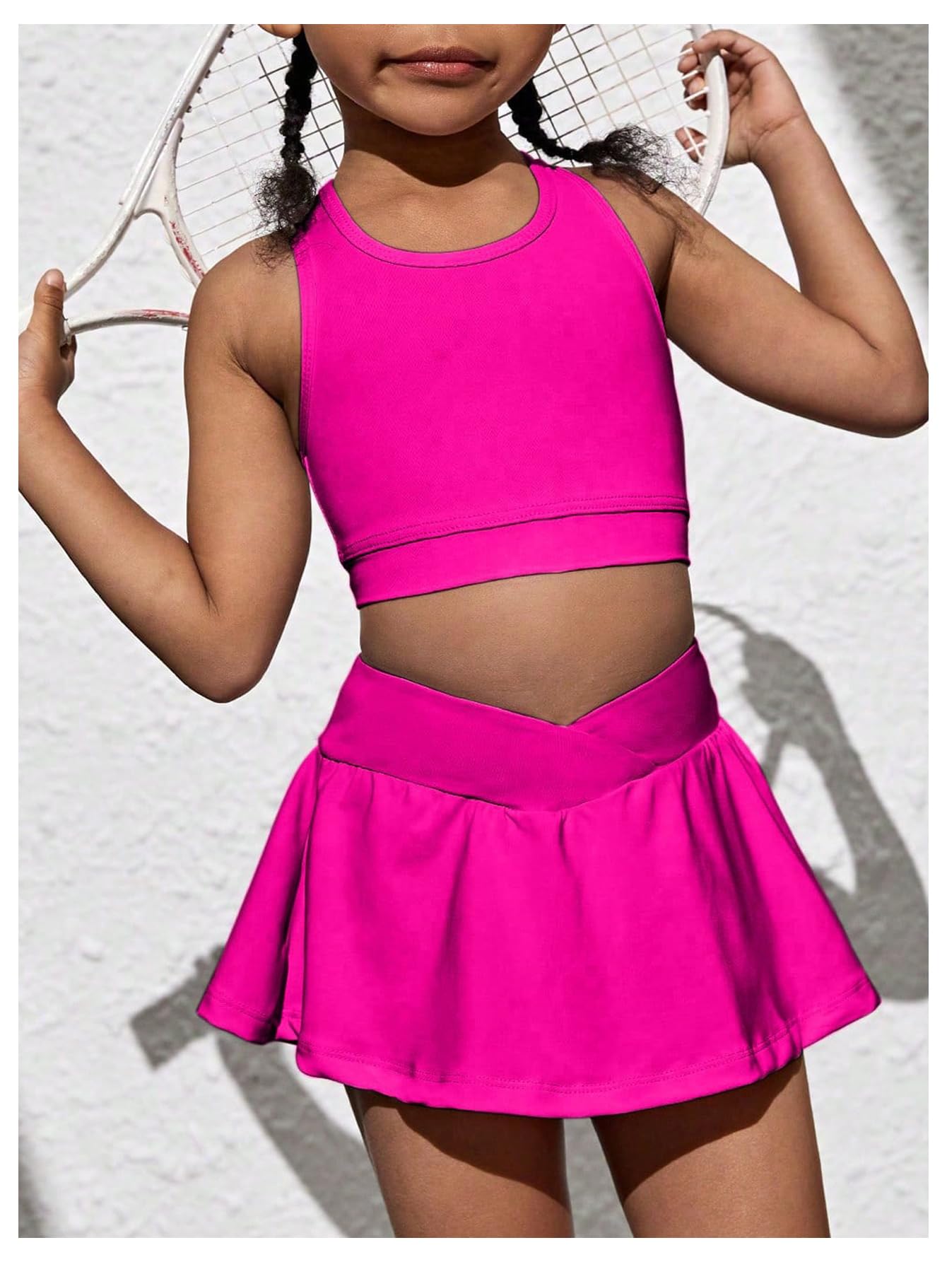 Features: Round neck, sleeveless, crop tank tops and tennis skirts skort set, fashionable