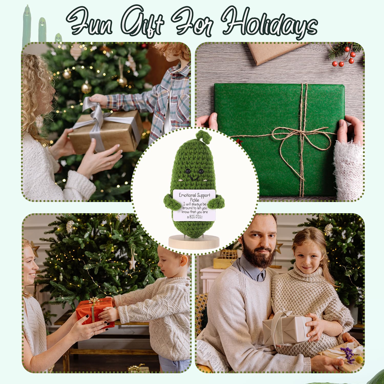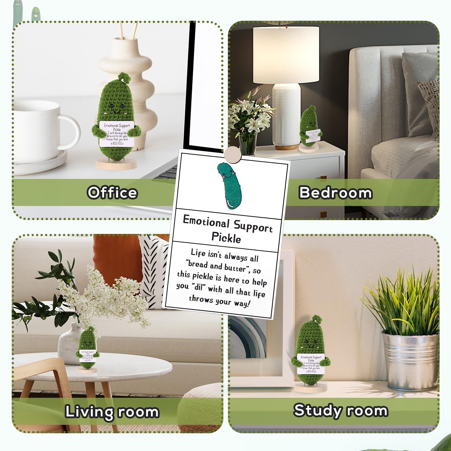 Encouraging Words: The cucumber crochet has inspirational words on the card. You will be happier when you see the doll when you are happy, and it will make you happy when you are sad. The positive doll will always be with you and bring you a good mood.