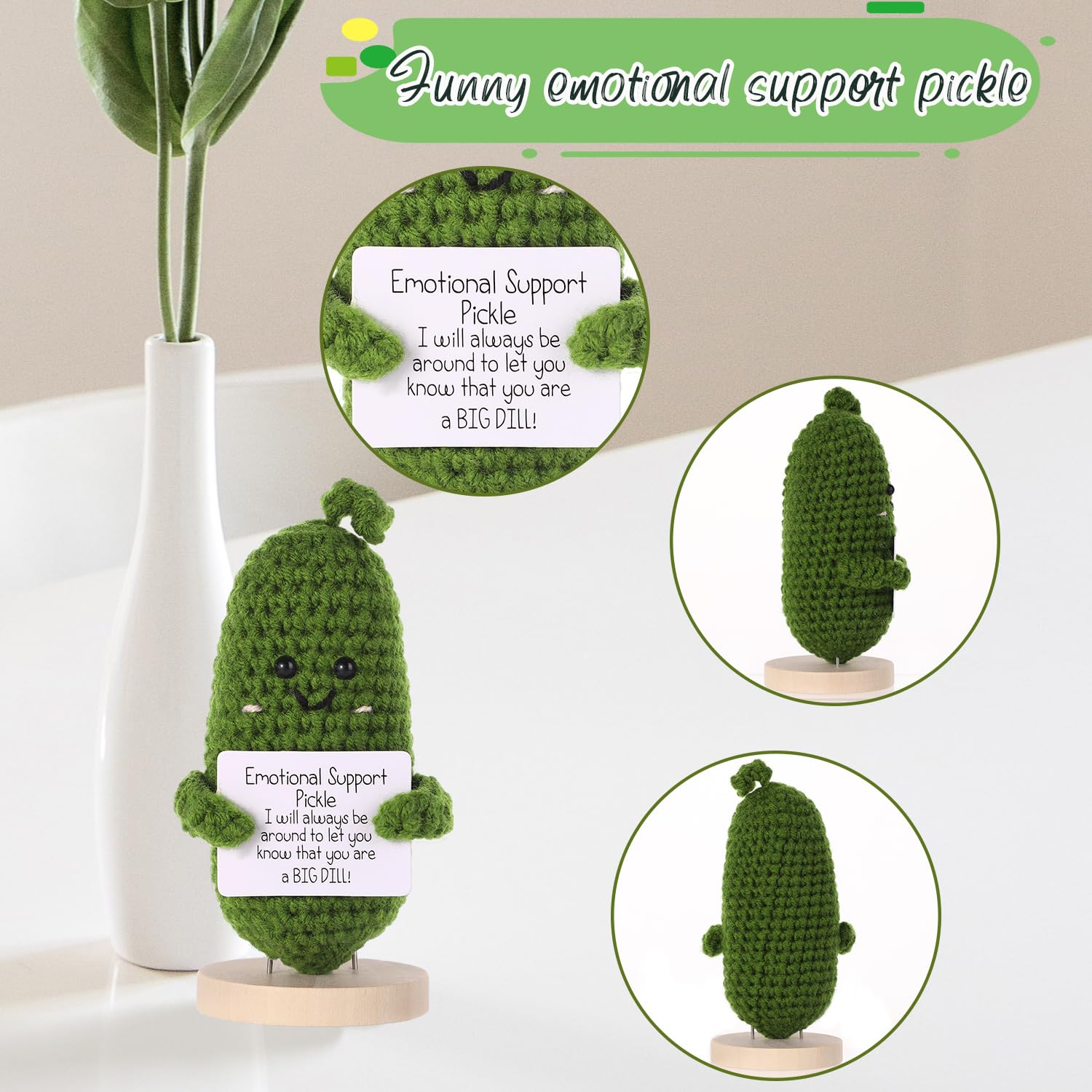 Product Material: The positive cucumber is made of premium wool yarn, reliable, long-lasting, colorfast and not easy to fall off, serving a long using time. The base is made of wood in good quality that you can use it with confidence.