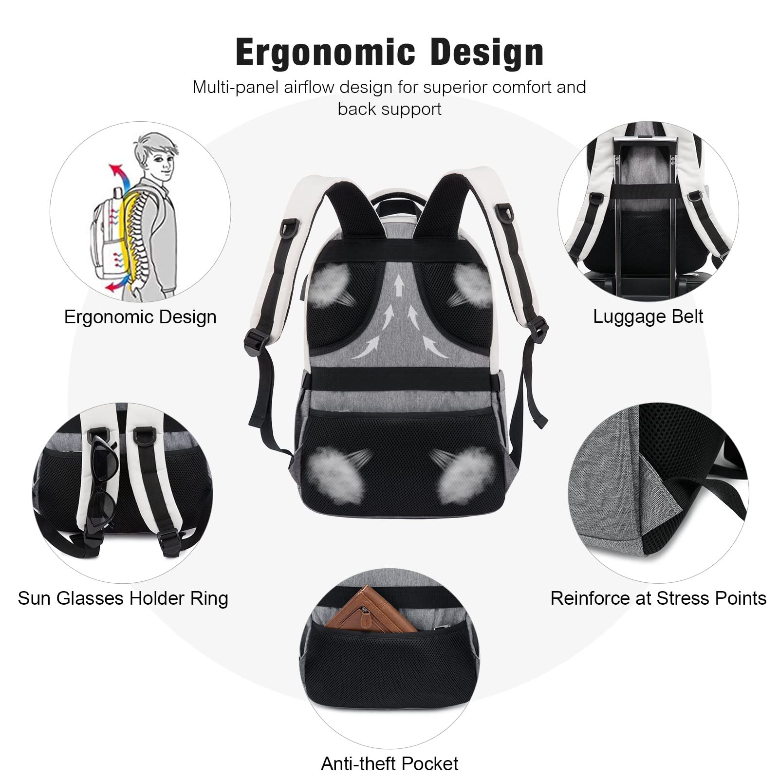 Item Security: The padded laptop compartment inside the backpack is equipped with securing straps to protect your computer from bumping and sliding around during your daily activities. Hidden pockets on the back of the work backpack protect your valuables such as student cards, credit cards and cell phones.