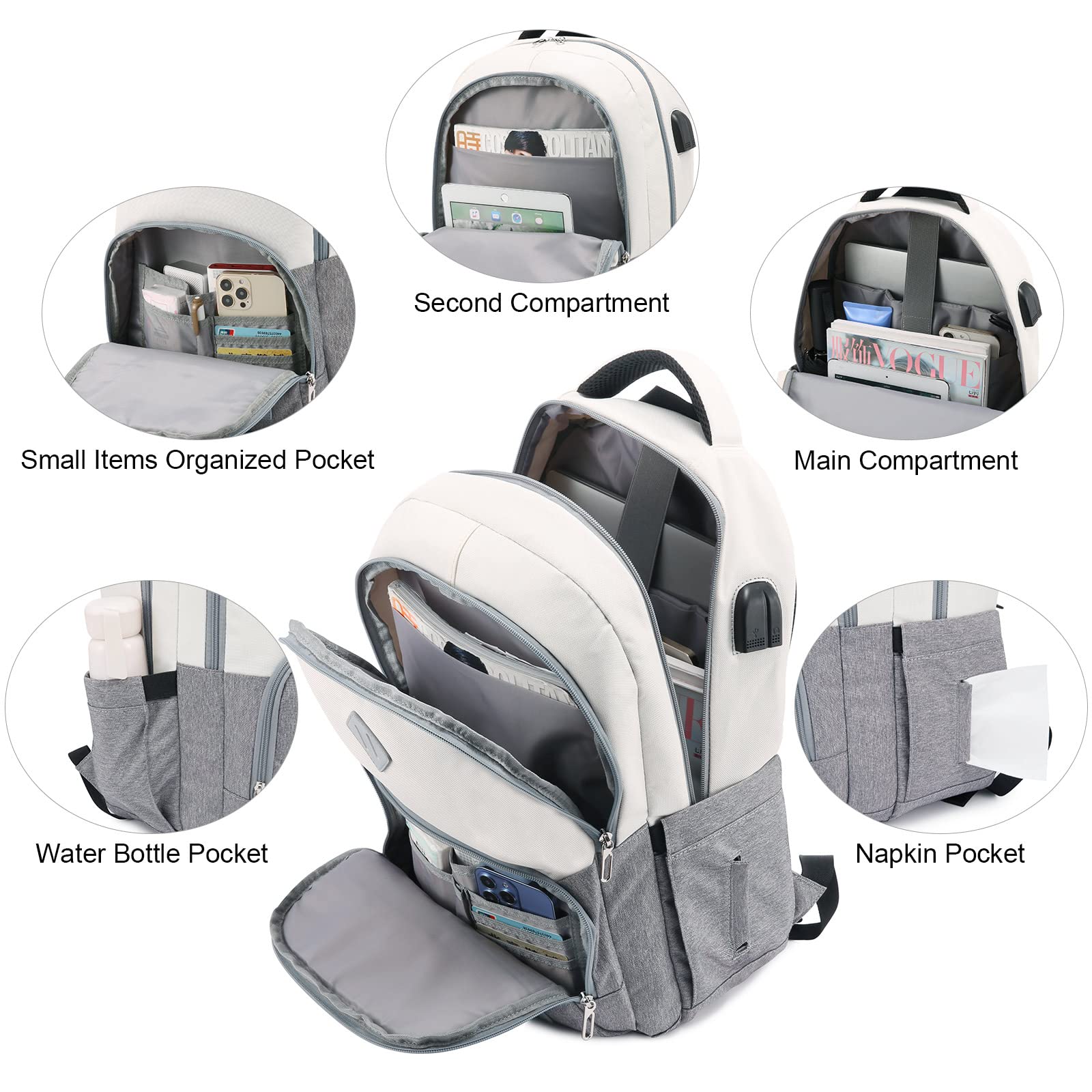 Capacity Design: A separate computer compartment can hold laptops of 15.6 inches and below. A main spacious packing room, and there are multiple pockets, pen pockets and compartments for small items at the front to keep your items organized and easier to find. An anti-theft pocket located on the back keeps your passport, wallet, phone and other valuable items safe and handy