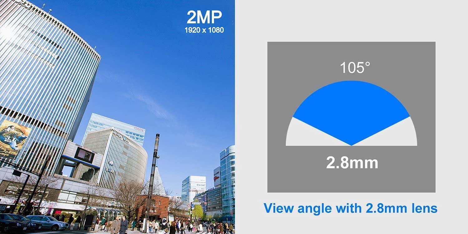 【ONLY Works with 5MP and 8MP 4K DVR】- This camera does NOT work with 4MP or lower resolution DVR, only work with 5MP or 4K 8MP DVR. This camera is 5 Megapixels high definition HD TVI/CVI/AHD/960H(1000 TVL), 65ft IR night vision range. It has a 2.8mm Fixed lens with 100 degree wide Field of View (FOV) to cover large areas