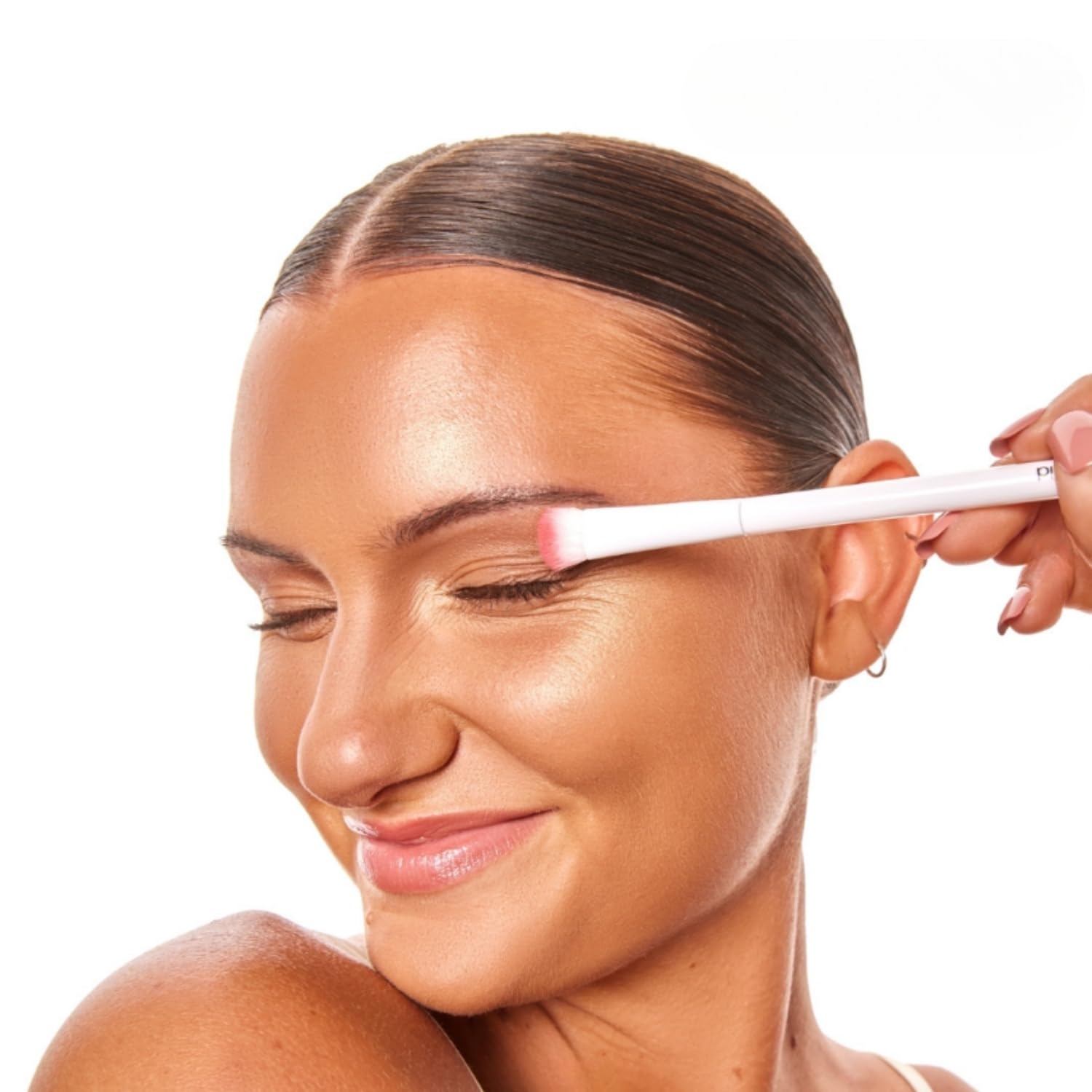 A very short, flat, slightly stiff brush with a rounded head made of pony hair