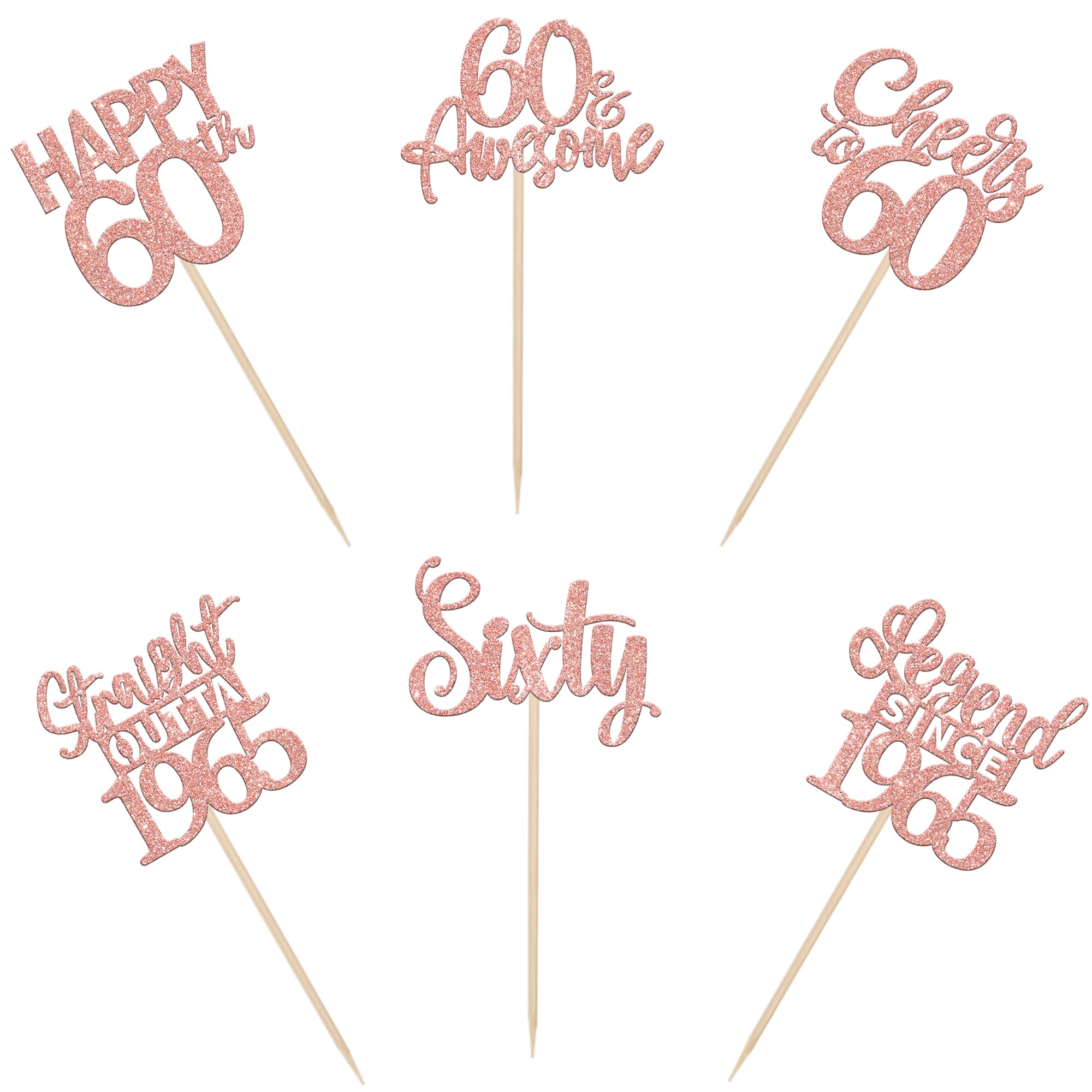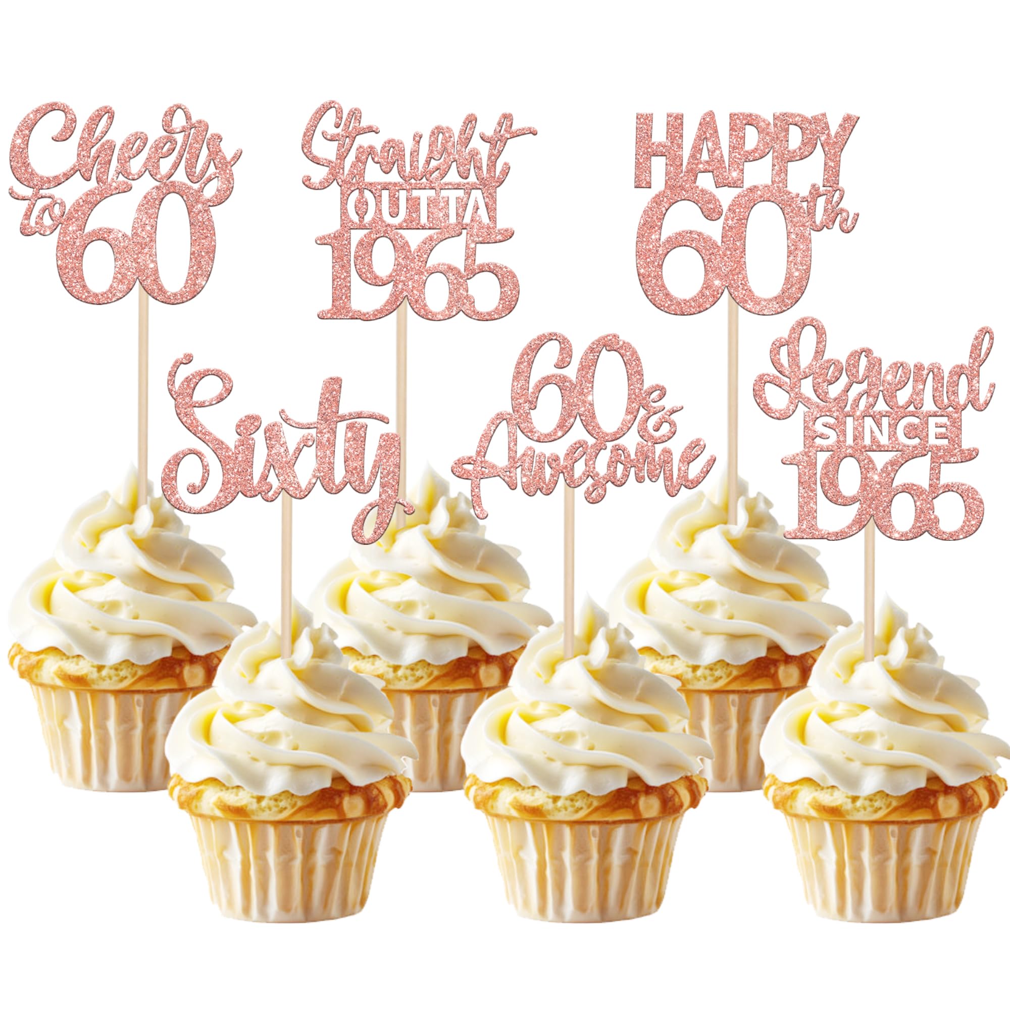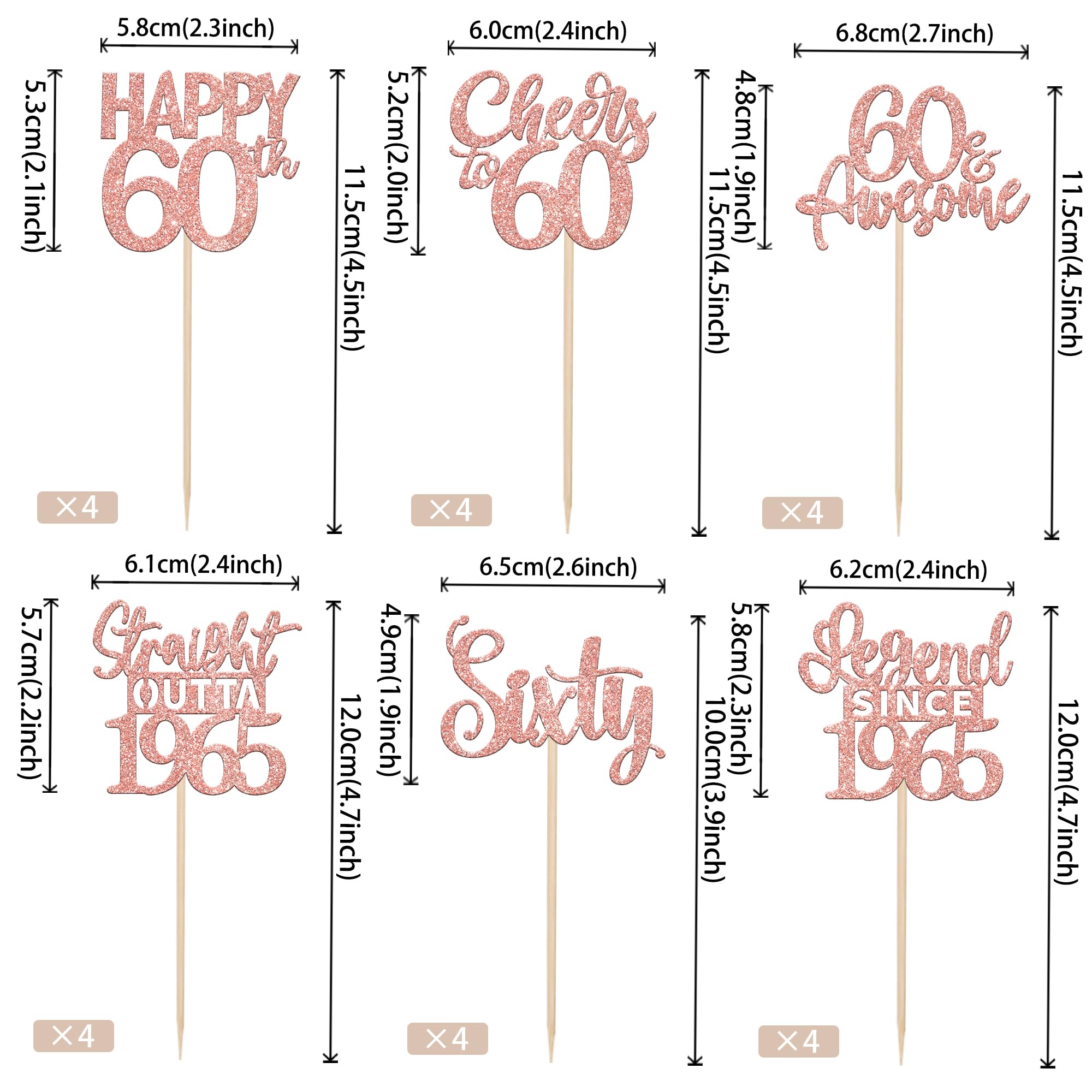 24PCS Happy 60th Birthday Cupcake Toppers Sixty Straight Outta 1965 Cupcake Picks Cheers to 60 Birthday Decorations Lengend Since 1965 Cupcake Decorations for 60th Birthday Anniversary Party Cake Decorations Supplies Perfect for legend since 1965 theme party, 60th anniversary theme party,cheers to 60 years theme party, 60 awesome theme party cupcake decorations supplies. Pack of 24 pcs,4 pcs of each design. The size is 2.3*4.5/ 2.4*4.5/ 2.7*4.5/ 2.4*4.7/ 2.6*3.9/ 2.4*4.7 inch ( with stick ) Made of high quality paper card stock,thick and sturdy. These straight outta 1965 cupcake toppers are one side glitter, another side is white, and they are intended for decoration only, please do not put them in oven or microwave. If the item you received has any defects, please contact us immediately.we will deal with it within 24 hours.