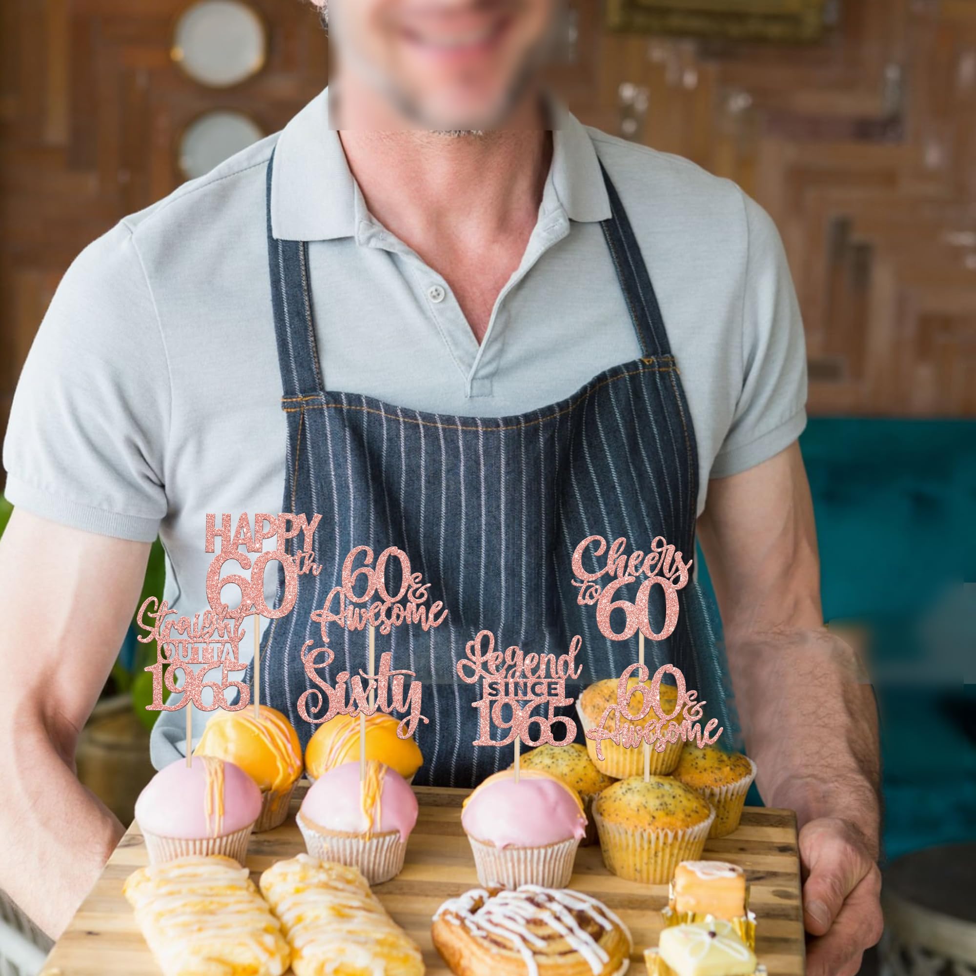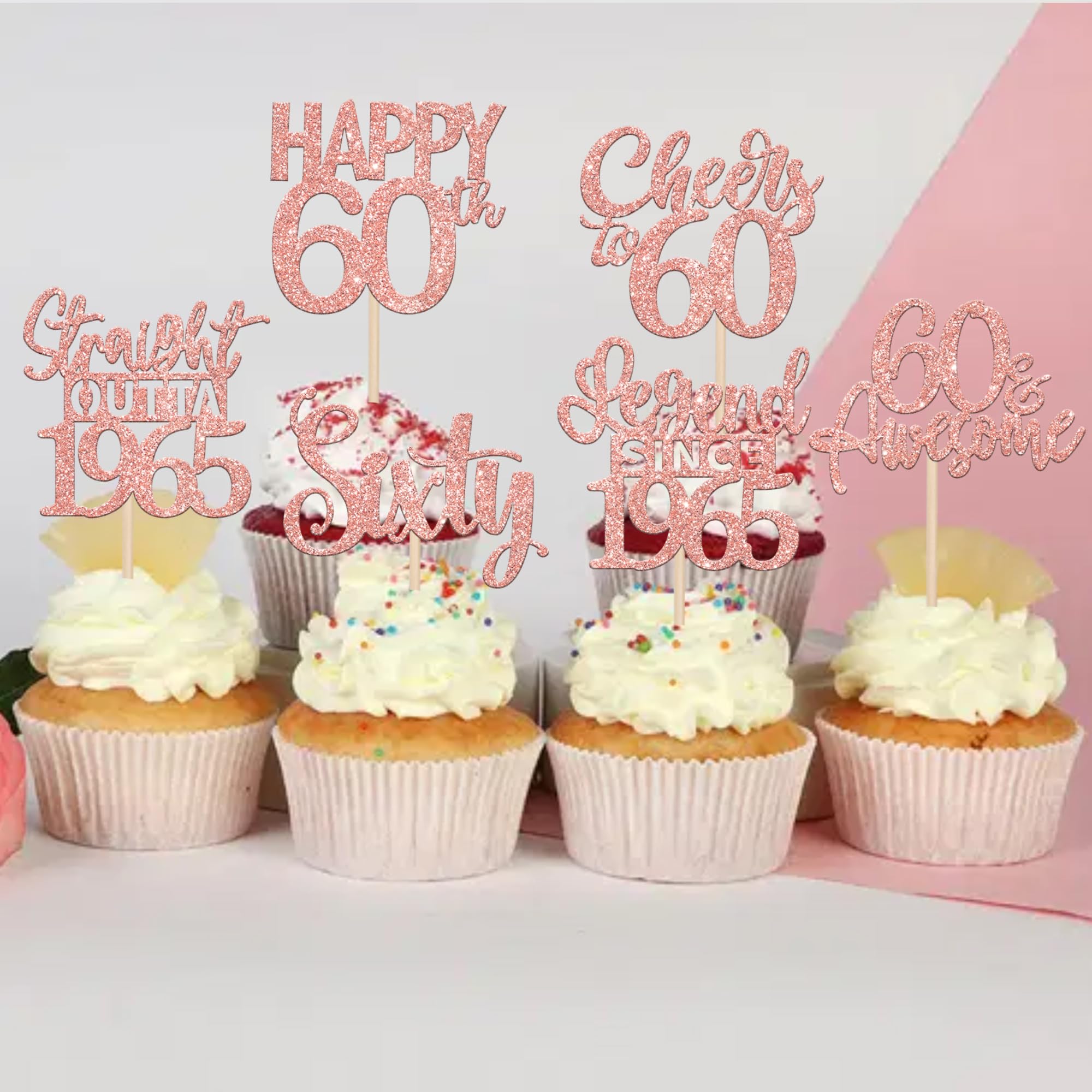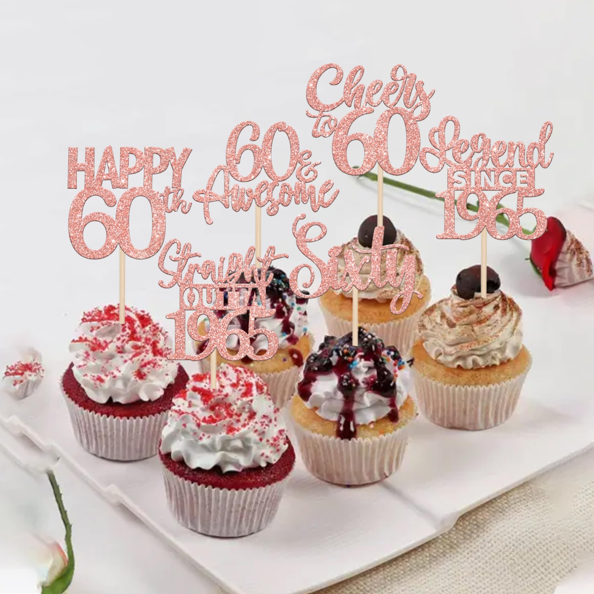 24PCS Happy 60th Birthday Cupcake Toppers Sixty Straight Outta 1965 Cupcake Picks Cheers to 60 Birthday Decorations Lengend Since 1965 Cupcake Decorations for 60th Birthday Anniversary Party Cake Decorations Supplies Perfect for legend since 1965 theme party, 60th anniversary theme party,cheers to 60 years theme party, 60 awesome theme party cupcake decorations supplies. Pack of 24 pcs,4 pcs of each design. The size is 2.3*4.5/ 2.4*4.5/ 2.7*4.5/ 2.4*4.7/ 2.6*3.9/ 2.4*4.7 inch ( with stick ) Made of high quality paper card stock,thick and sturdy. These straight outta 1965 cupcake toppers are one side glitter, another side is white, and they are intended for decoration only, please do not put them in oven or microwave. If the item you received has any defects, please contact us immediately.we will deal with it within 24 hours.